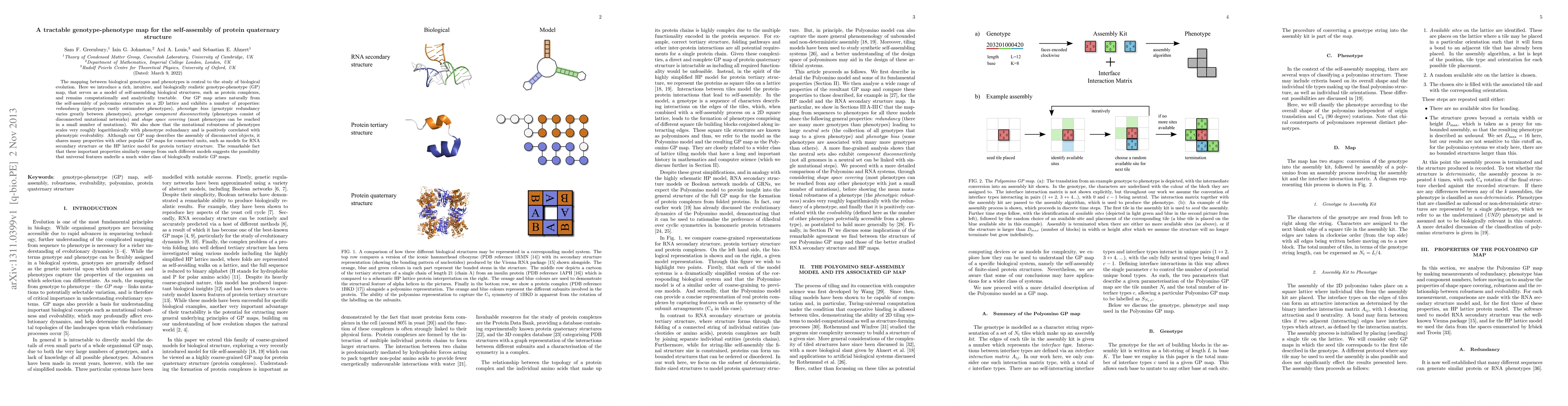 This paper introduces a biologically realistic and computationally tractable genotype-phenotype map for modeling the self-assembly of protein complexes, demonstrating properties like redundancy, phenotype bias, and shape space covering. It suggests universal features may underlie a wide class of biologically realistic genotype-phenotype maps.