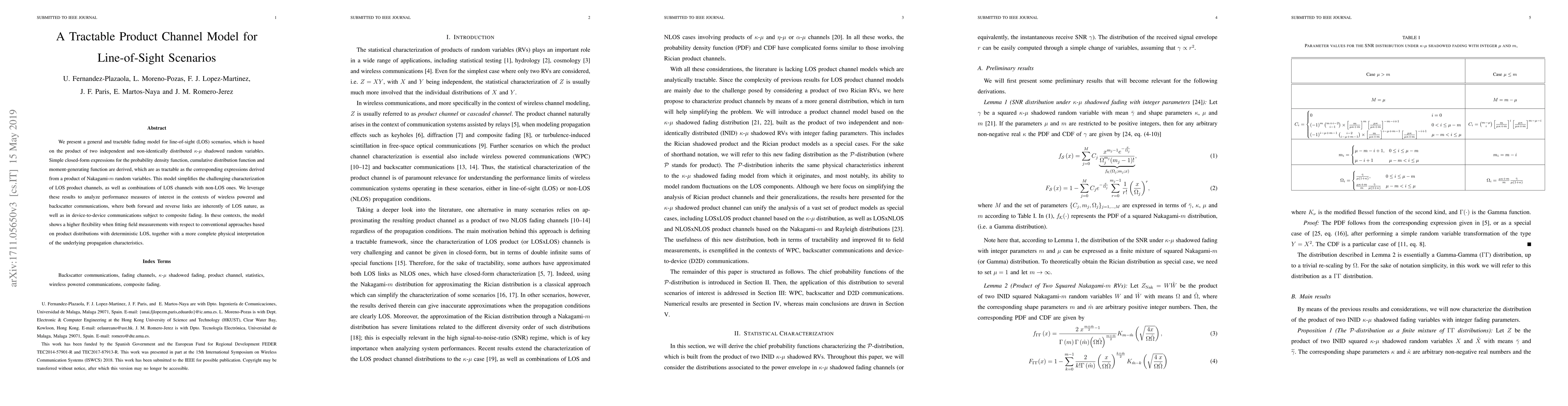 We present a general and tractable fading model for line-of-sight (LOS) scenarios, which is based on the product of two independent and non-identically distributed $\kappa$-$\mu$ shadowed random variables. Simple closed-form expressions for the probability density function, cumulative distribution function and moment-generating function are derived, which are as tractable as the corresponding expressions derived from a product of Nakagami-$m$ random variables. This model simplifies the challenging characterization of LOS product channels, as well as combinations of LOS channels with non-LOS ones. We leverage these results to analyze performance measures of interest in the contexts of wireless powered and backscatter communications, where both forward and reverse links are inherently of LOS nature, as well as in device-to-device communications subject to composite fading. In these contexts, the model shows a higher flexibility when fitting field measurements with respect to conventional approaches based on product distributions with deterministic LOS, together with a more complete physical interpretation of the underlying propagation characteristics.