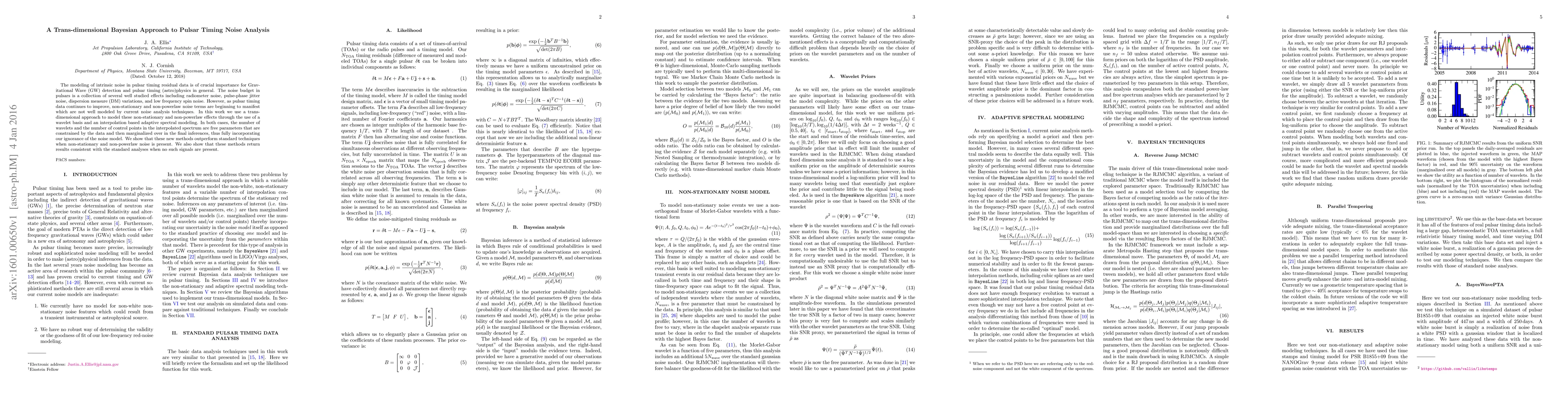 This paper proposes a trans-dimensional Bayesian method using wavelet basis and adaptive spectral modeling to better analyze intrinsic noise in pulsar timing data, outperforming standard techniques for non-stationary and non-powerlaw noise while maintaining consistency for well-modeled noise.