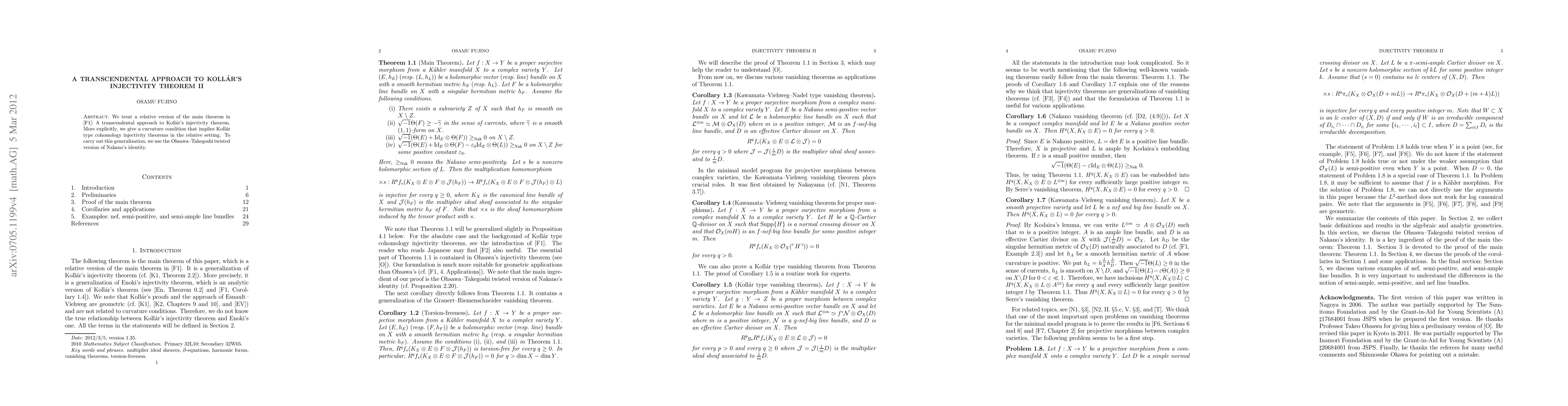 This paper generalizes a previous result on Kollár's injectivity theorem to a relative setting, providing a curvature condition for relative cohomology injectivity, and utilizes the Ohsawa-Takegoshi version of Nakano's identity for the generalization.
