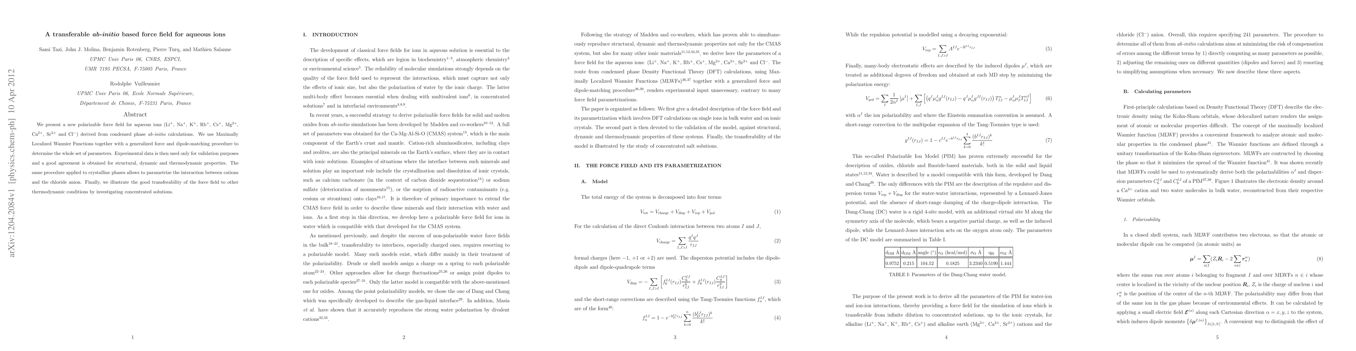 This paper introduces a new polarizable force field for various aqueous ions derived from ab-initio calculations, validated against experimental data, and demonstrates its transferability to concentrated solutions. The force field parameters are determined using Maximally Localized Wannier Functions and a generalized force and dipole-matching procedure.