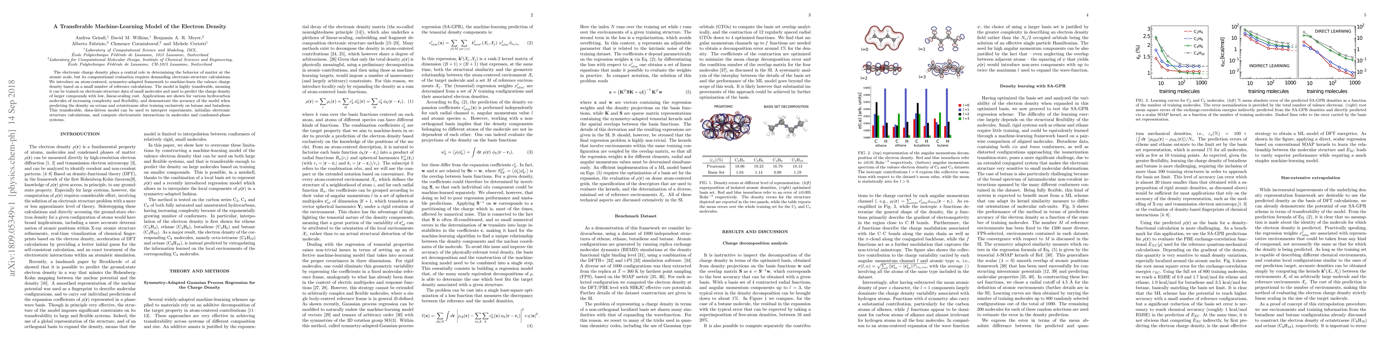This paper presents a machine-learning model for predicting electron density in molecules, trained on small reference compounds, and demonstrates its transferability to larger, more complex molecules with low computational cost. The model's accuracy is shown through successful predictions of electron density in octane and octatetraene, trained only on butane and butadiene.