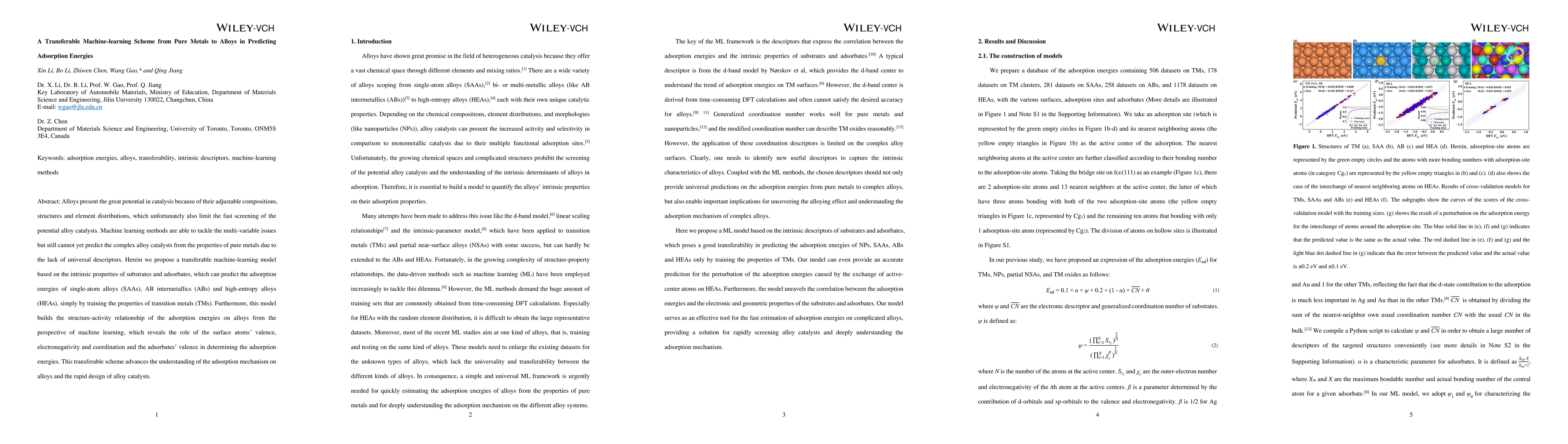 This paper proposes a transferable machine-learning model that can predict adsorption energies in various alloy types by training on properties of pure metals, advancing the understanding of adsorption mechanisms and facilitating rapid alloy catalyst design. The model identifies the roles of surface atoms' valence, electronegativity, and coordination in determining adsorption energies.