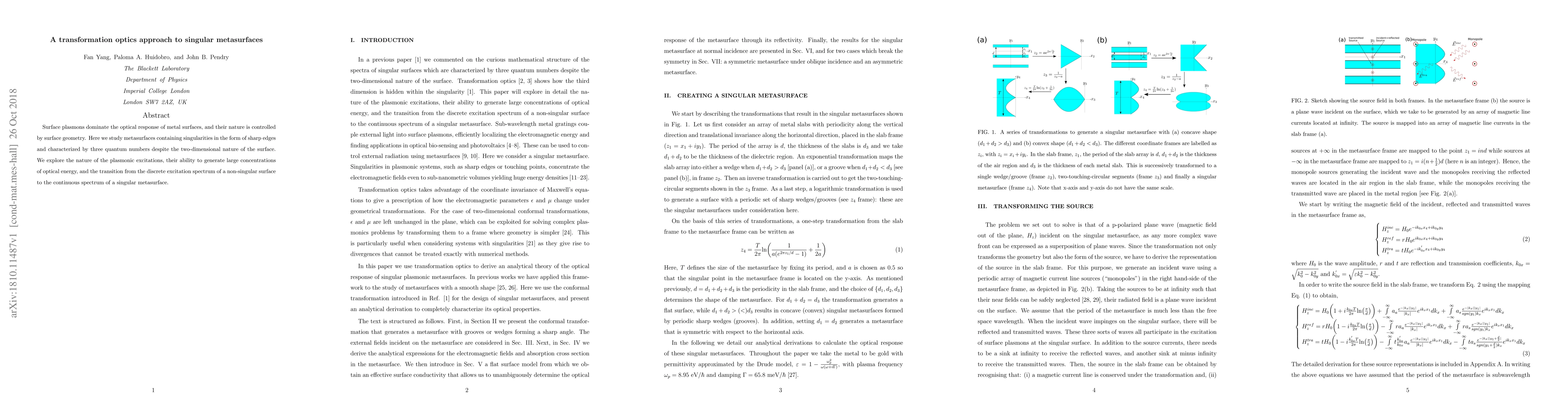 This research investigates metasurfaces with singular features like sharp edges, exploring how their geometry controls surface plasmons and transitions from discrete to continuous optical excitation spectra, highlighting their potential for concentrating optical energy.