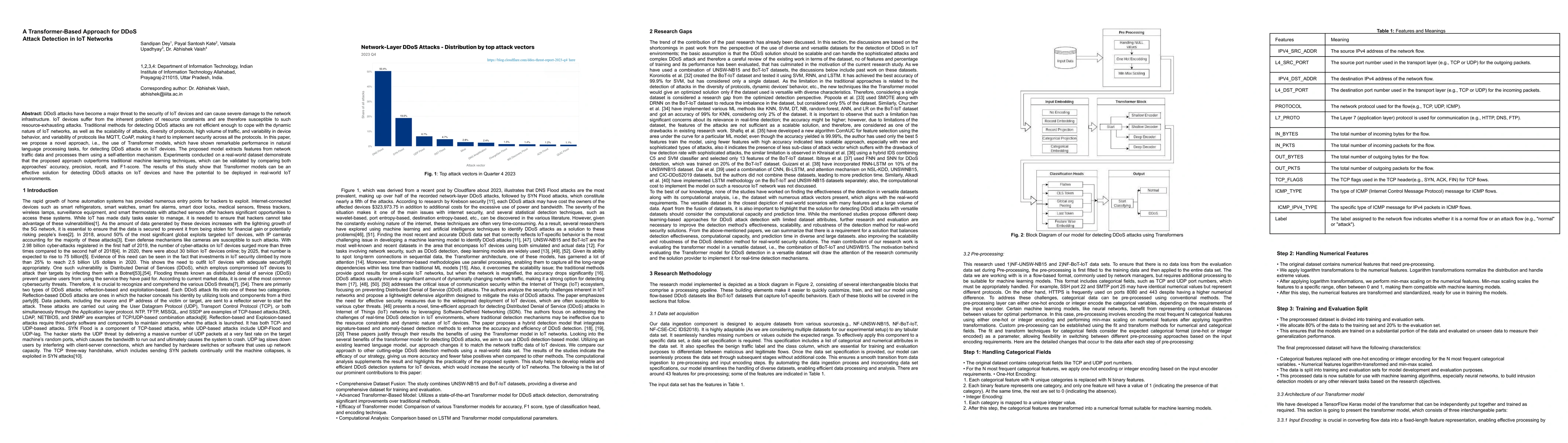DDoS attacks have become a major threat to the security of IoT devices and can cause severe damage to the network infrastructure. IoT devices suffer from the inherent problem of resource constraints and are therefore susceptible to such resource-exhausting attacks. Traditional methods for detecting DDoS attacks are not efficient enough to cope with the dynamic nature of IoT networks, as well as the scalability of the attacks, diversity of protocols, high volume of traffic, and variability in device behavior, and variability of protocols like MQTT, CoAP, making it hard to implement security across all the protocols. In this paper, we propose a novel approach, i.e., the use of Transformer models, which have shown remarkable performance in natural language processing tasks, for detecting DDoS attacks on IoT devices. The proposed model extracts features from network traffic data and processes them using a self-attention mechanism. Experiments conducted on a real-world dataset demonstrate that the proposed approach outperforms traditional machine learning techniques, which can be validated by comparing both approaches' accuracy, precision, recall, and F1-score. The results of this study show that the Transformer models can be an effective solution for detecting DDoS attacks on IoT devices and have the potential to be deployed in real-world IoT environments.