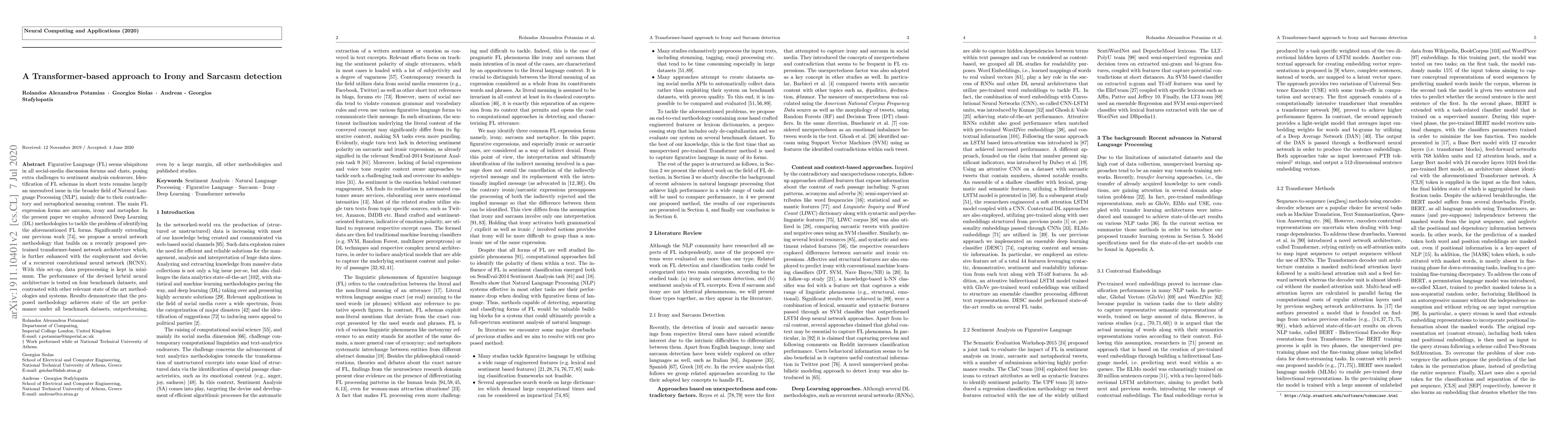 This paper proposes a transformer-based neural network enhanced with a recurrent convolutional neural network (RCNN) for detecting irony and sarcasm in social media texts. The hybrid architecture achieves state-of-the-art performance on four benchmark datasets, outperforming existing methods.