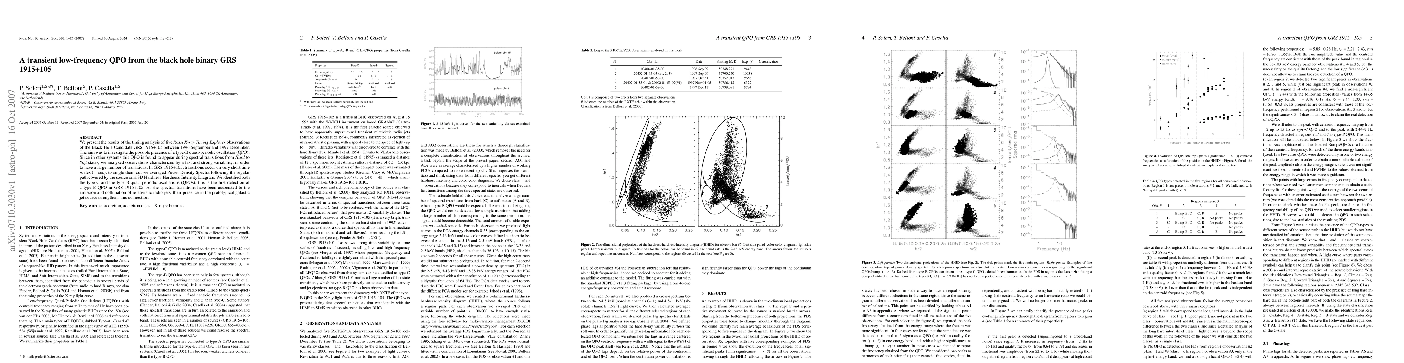 The study performed a timing analysis of five Rossi X-ray Timing Explorer (RXTE) observations of the black hole candidate GRS 1915+105, focusing on spectral transitions from Hard to Soft states to investigate the presence of a type-B quasi-periodic oscillation (QPO).