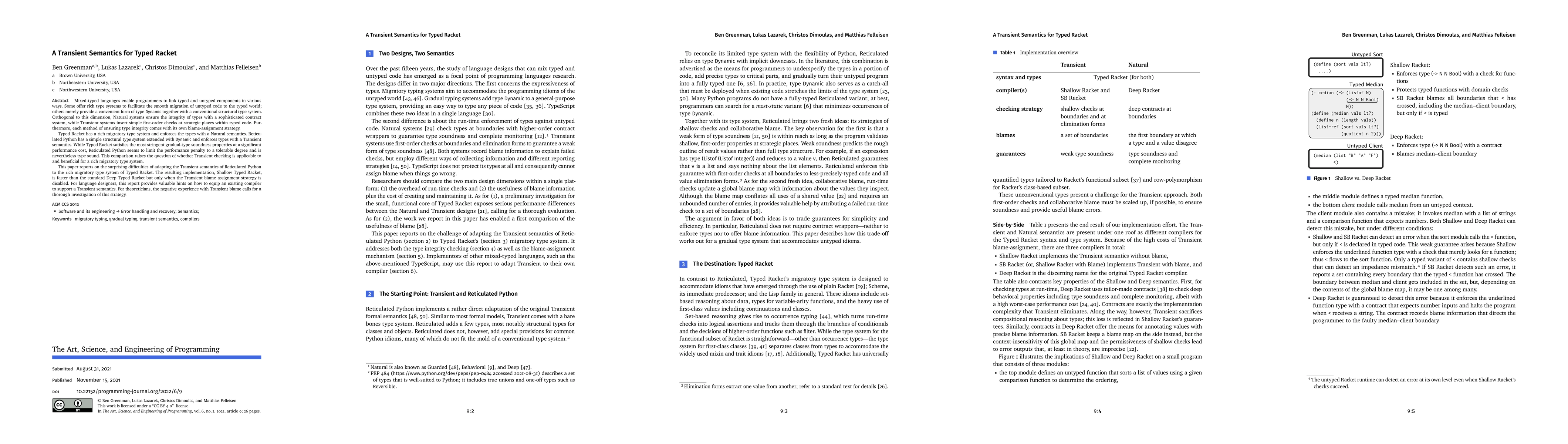 This paper explores the adaptation of Transient semantics to Typed Racket, finding that implementing Transient checks in a rich migratory type system is challenging and results in performance gains only when the Transient blame assignment strategy is disabled. The study highlights the complexities and implications for language design and theoretical investigations.