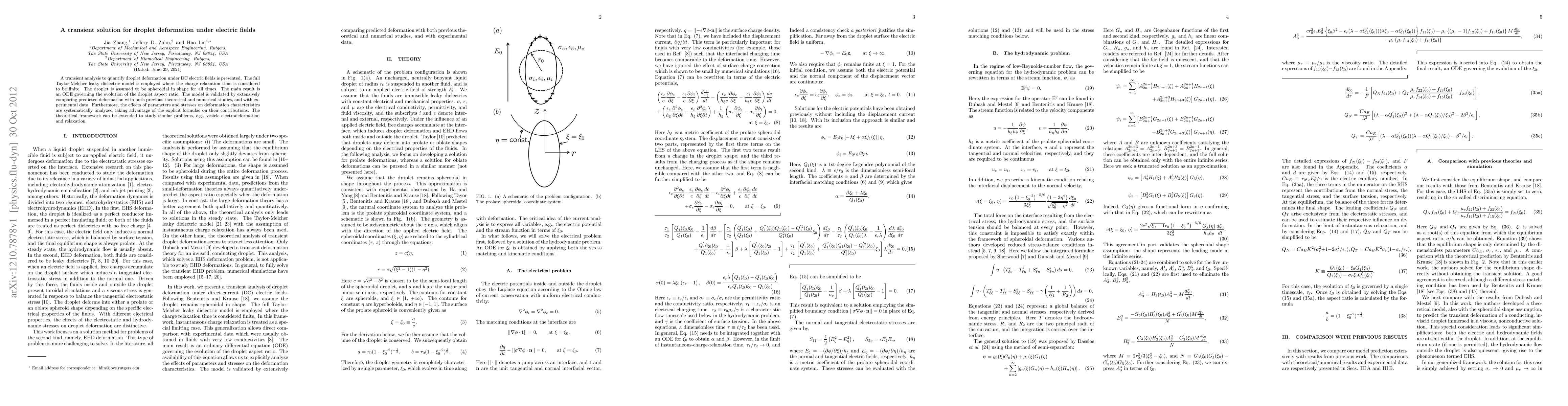 This paper presents a transient solution for droplet deformation under DC electric fields using the Taylor-Melcher leaky dielectric model, deriving an ODE for the droplet aspect ratio. The model is validated against theoretical, numerical, and experimental data, and systematically analyzes the effects of parameters and stresses on deformation.