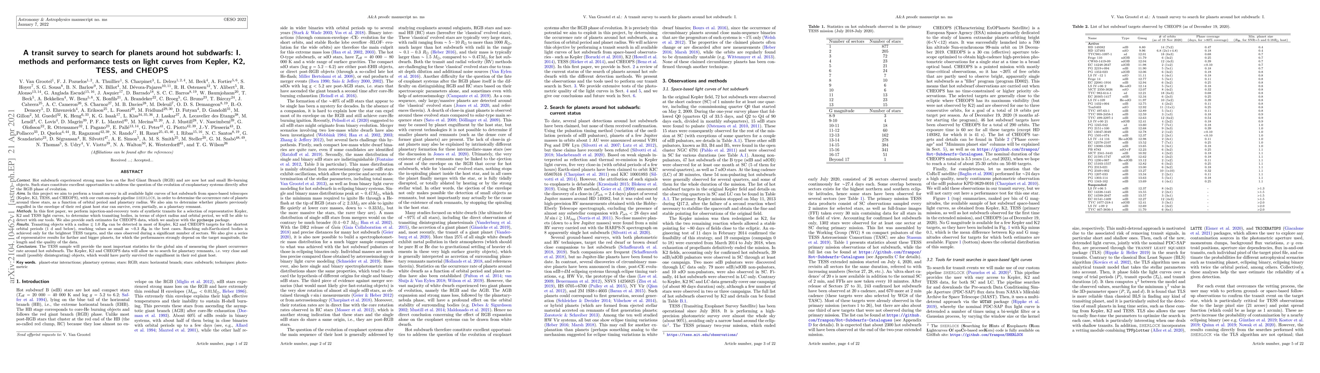 This paper outlines a transit survey to detect planets around hot subdwarfs using data from Kepler, K2, TESS, and CHEOPS. The study employs a custom pipeline, SHERLOCK, and injection-and-recovery tests to determine the detectability of planets, finding that TESS will provide the most significant statistics for the planet occurrence rate, while Kepler, K2, and CHEOPS data will help search for very close, small planetary remnants.