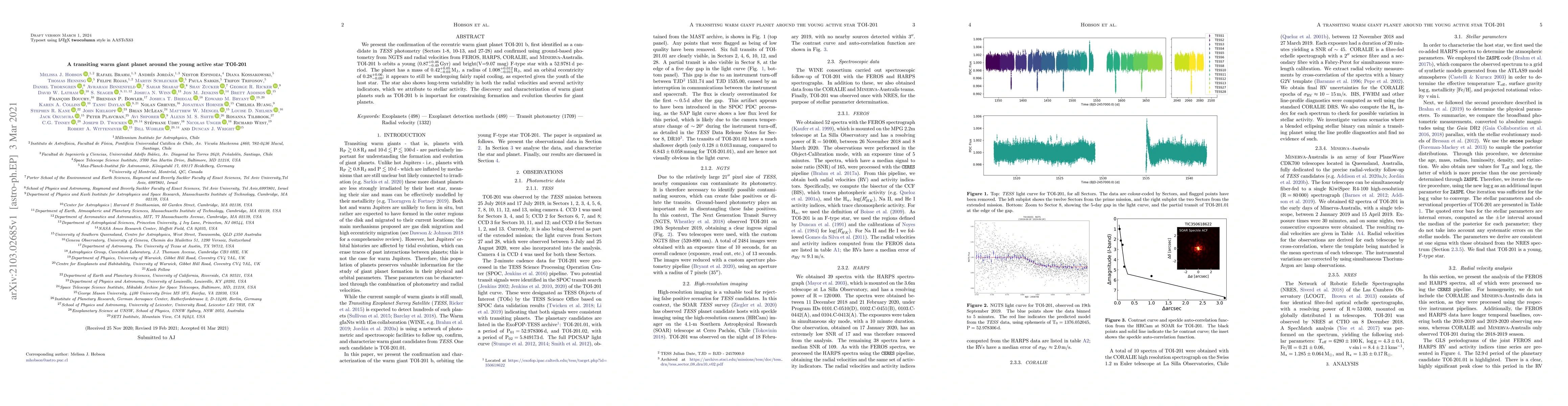 A transiting warm giant planet TOI-201 b is confirmed orbiting a young F-type star with a 52-day period, mass of 0.42M_J, and radius of 1.01R_J.