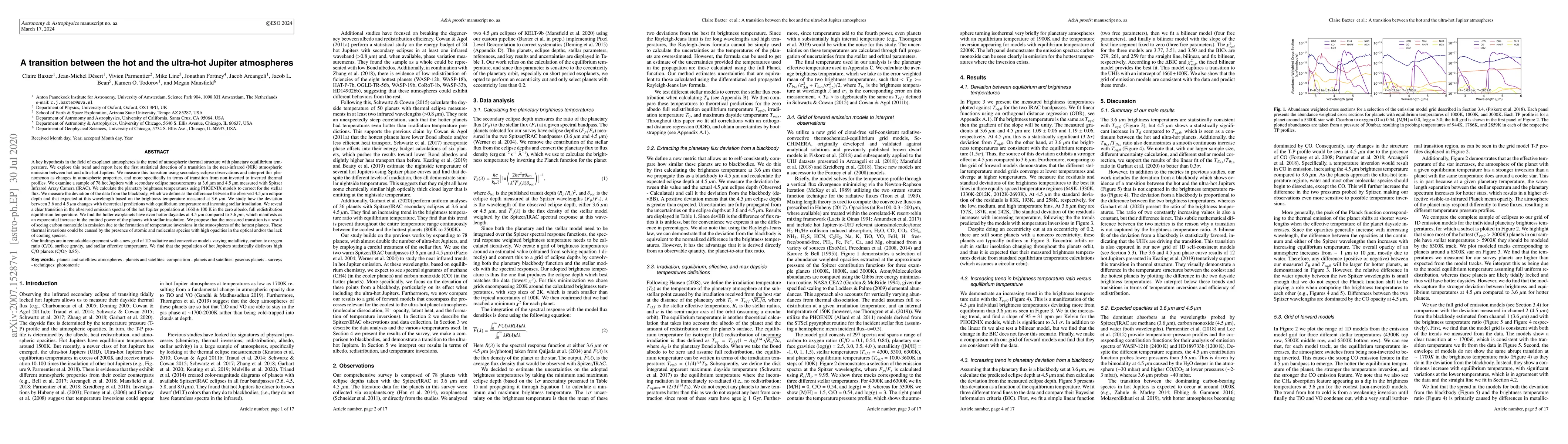 This paper reports the first statistical detection of a transition in the near-infrared emission between hot and ultra-hot Jupiters, revealing a shift in atmospheric thermal profiles at 1660 +/- 100 K. The observed transition suggests the presence of carbon monoxide emission due to temperature inversions in the atmospheres of the hottest planets.