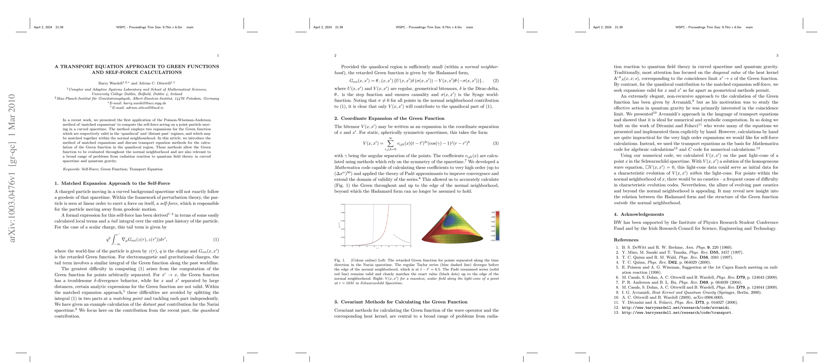 This paper introduces the Poisson-Wiseman-Anderson method of matched expansions to compute the self-force on a point particle in curved spacetime, employing transport equation techniques for the Green function in the quasilocal region. These methods are applicable to various problems including radiation reaction, quantum field theory, and quantum gravity.