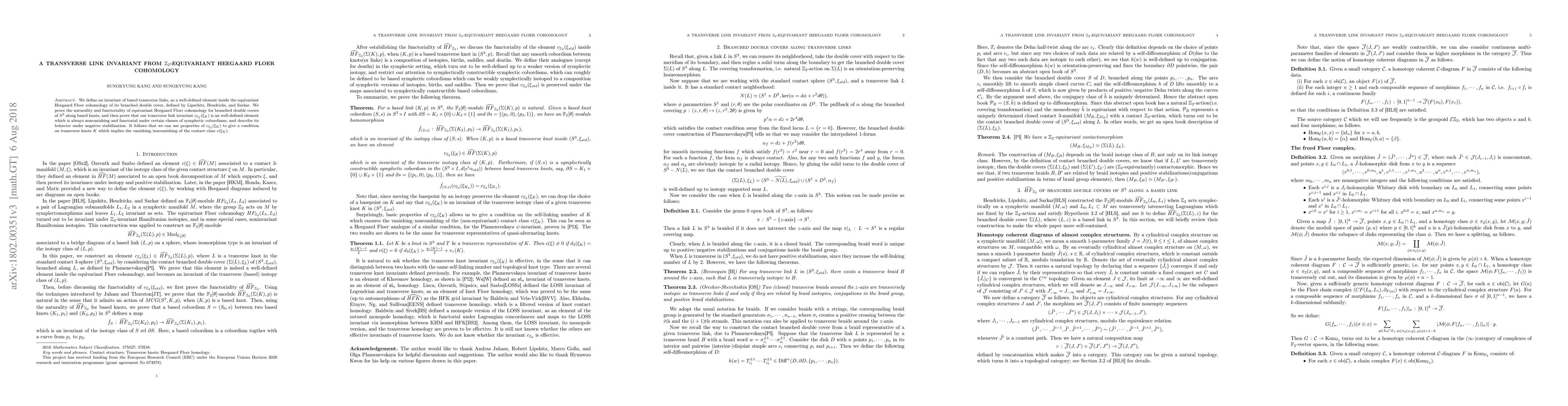 We define an invariant of based transverse links, as a well-defined element inside the equivariant Heegaard Floer cohomology of its branched double cover, defined by Lipschitz, Hendricks, and Sarkar. We prove the naturality and functoriality of equivariant Heegaard Floer cohomology for branched double covers of $S^3$ along based knots, and then prove that our transverse link invariant $c_{\mathbb{Z}_{2}}(\xi_{K})$ is an well-defined element which is always nonvanishing and functorial under certain classes of symplectic cobordisms, and describe its behavior under negative stabilization. It follows that we can use properties of $c_{\mathbb{Z}_{2}}(\xi_{K})$ to give a condition on transverse knots K which implies the vanishing/nonvanishing of the contact class $c(\xi_{K})$.