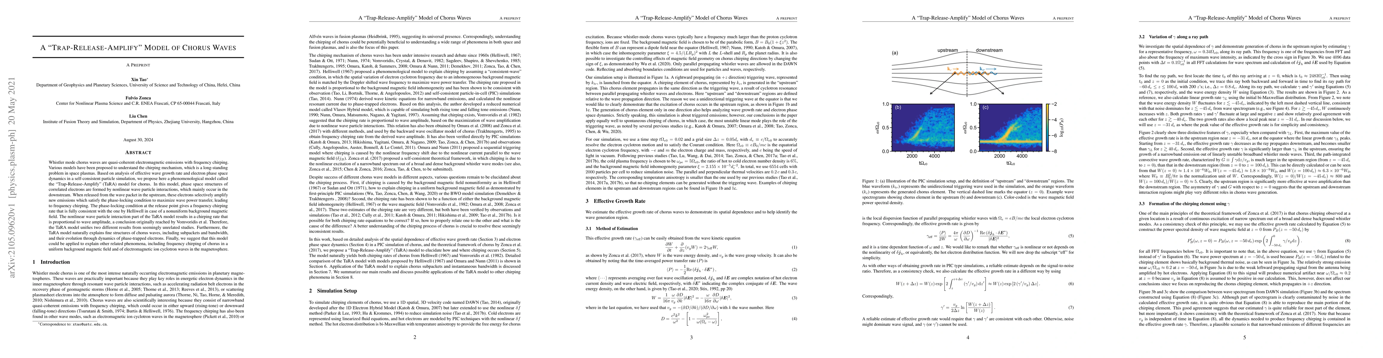 Researchers propose a new model, called the Trap-Release-Amplify (TaRA) model, to explain the chirping mechanism of Whistler mode chorus waves in space plasmas, suggesting that phase-locking conditions lead to frequency chirping and unifying two different results from unrelated studies.