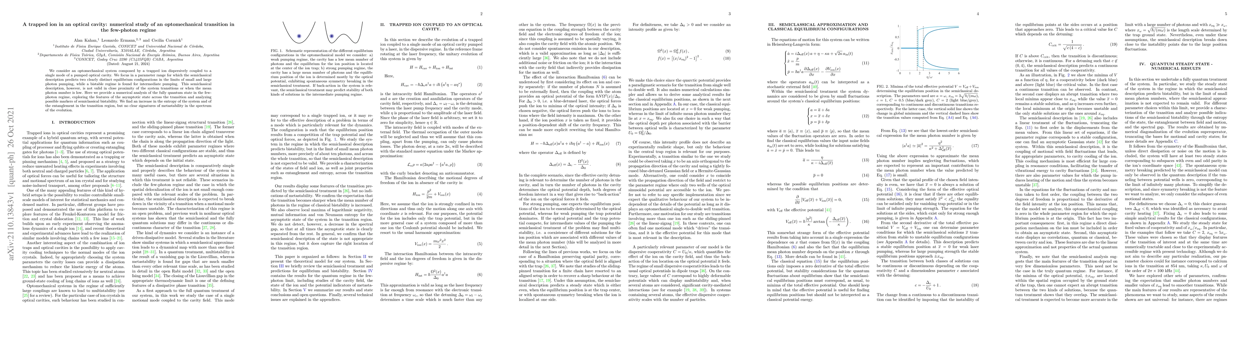 Researchers studied an optomechanical system with a trapped ion in an optical cavity, finding increased entropy and entanglement near the system's transitions, but no clear signs of metastability.