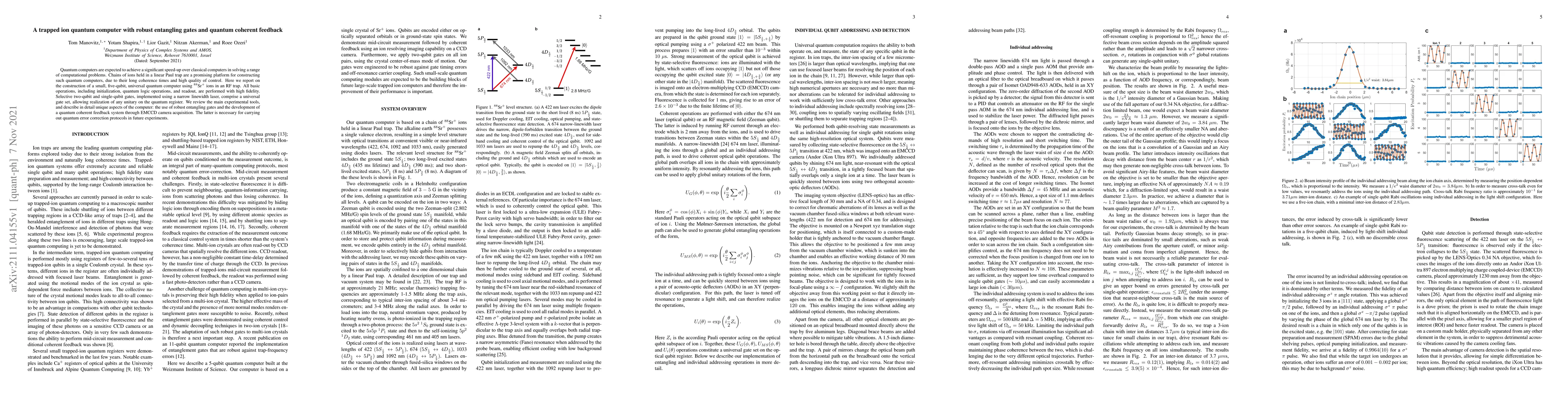 This paper details the construction of a five-qubit trapped ion quantum computer using $^{88}\text{Sr}^{+}$ ions, showcasing high-fidelity operations and robust entangling gates. It also introduces a quantum coherent feedback system for future quantum error correction protocols.