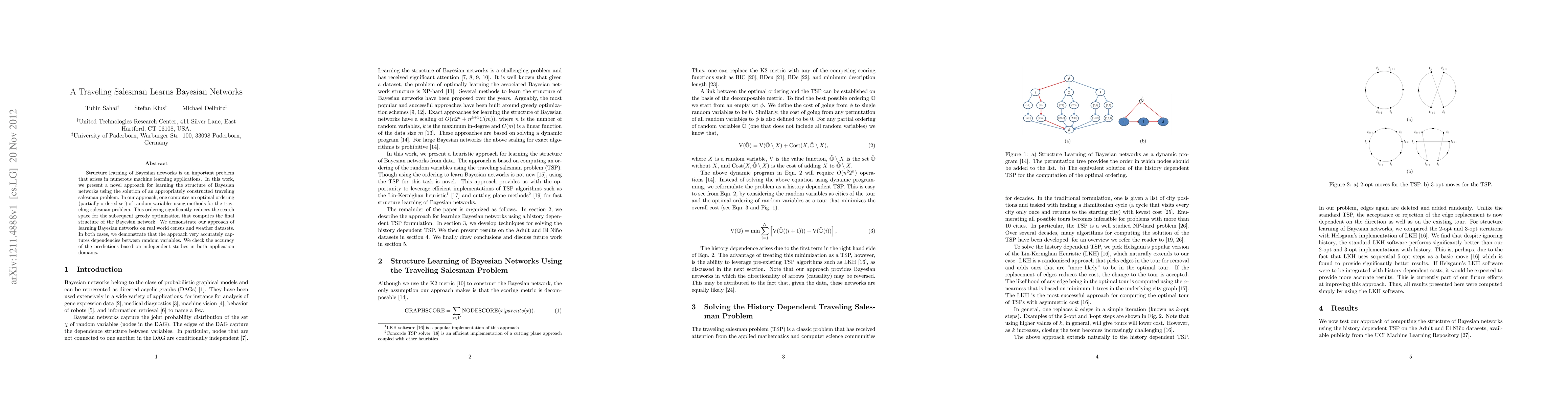 This paper introduces a novel method for learning Bayesian network structures by leveraging the solution of a traveling salesman problem to determine an optimal ordering of variables, which significantly reduces the search space for subsequent optimization. The approach is validated on real-world datasets, demonstrating accurate capture of dependencies and validated predictions.