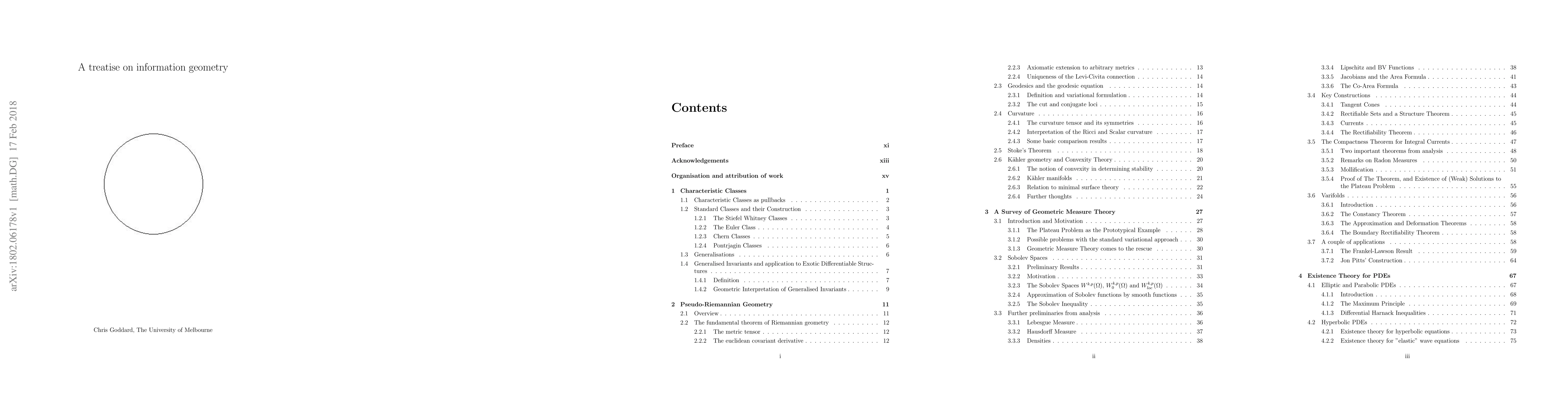 This is the first version of a submission made to vixra back in August 2009. It is concerned with the exploration of various ideas due to Roy Frieden of the University of Arizona in his manuscript "Physics from Fisher Information", which was originally published in December 1998 by Cambridge University Press. In addition to exploration and investigation of same, a key aim of this article is/was to further develop the ideas mentioned in the aforementioned work, as well as explore various exotic differentiable structures and their relationship to physics. Apart from the original component of this manuscript, a series of survey chapters are provided, in the interest of keeping the treatise self-contained. The first summarises the main preliminary results on the existence of non-standard structures on manifolds from the Milnor-Steenrod school. The second is a standard introduction to semi-riemannian geometry. The third introduces the language of geometric measure theory, which is important in justifying the existence of smooth solutions to variational problems with smooth structures and smooth integrands. The fourth is a short remark on PDE existence theory, which is needed for the fifth, which is essentially a typeset version of a series of lectures given by Ben Andrews and Gerhard Huisken on the Hamilton-Perelman program for proving the Geometrisation Conjecture of Bill Thurston.