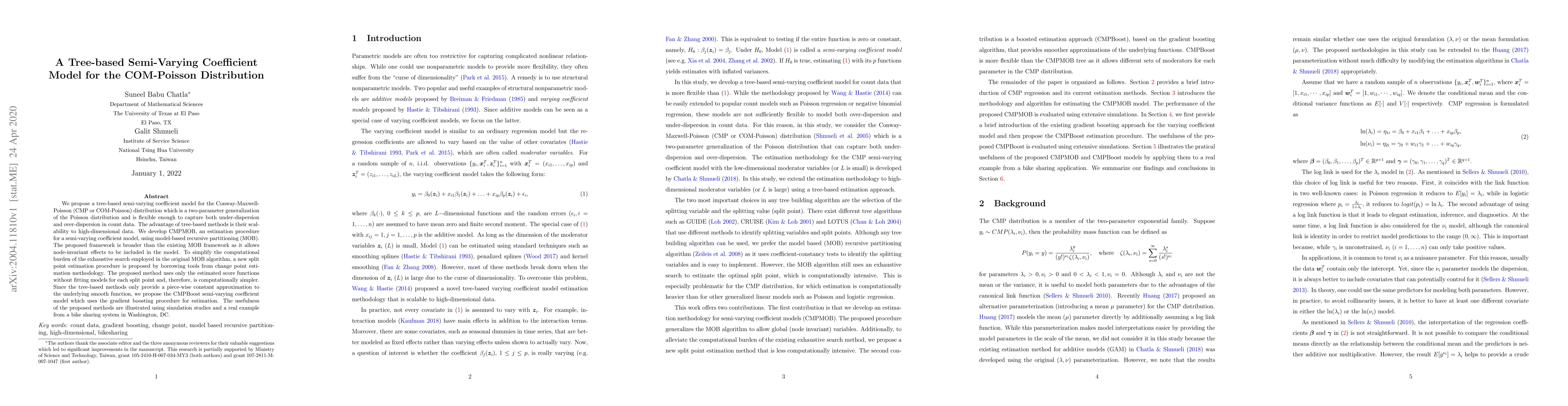 Researchers propose a tree-based semi-varying coefficient model for the Conway-Maxwell-Poisson distribution to capture under- and over-dispersion in count data, offering a scalable and computationally efficient approach.