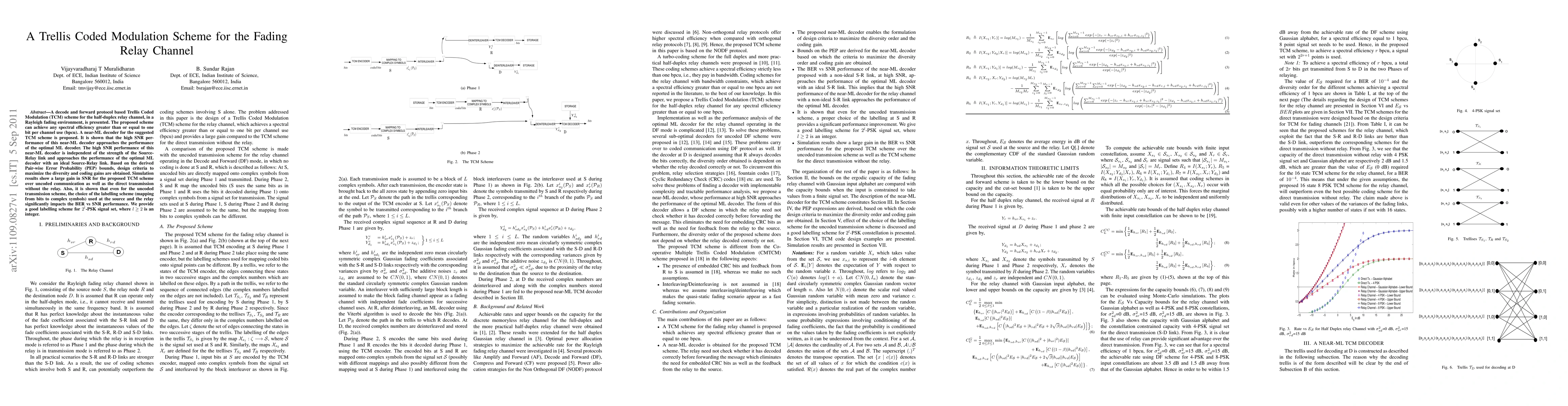 A decode and forward protocol based Trellis Coded Modulation (TCM) scheme for the half-duplex relay channel, in a Rayleigh fading environment, is presented. The proposed scheme can achieve any spectral efficiency greater than or equal to one bit per channel use (bpcu). A near-ML decoder for the suggested TCM scheme is proposed. It is shown that the high SNR performance of this near-ML decoder approaches the performance of the optimal ML decoder. The high SNR performance of this near-ML decoder is independent of the strength of the Source-Relay link and approaches the performance of the optimal ML decoder with an ideal Source-Relay link. Based on the derived Pair-wise Error Probability (PEP) bounds, design criteria to maximize the diversity and coding gains are obtained. Simulation results show a large gain in SNR for the proposed TCM scheme over uncoded communication as well as the direct transmission without the relay. Also, it is shown that even for the uncoded transmission scheme, the choice of the labelling scheme (mapping from bits to complex symbols) used at the source and the relay significantly impacts the BER vs SNR performance. We provide a good labelling scheme for $2^l$-PSK signal set, where $l\geq 2$ is an integer.
