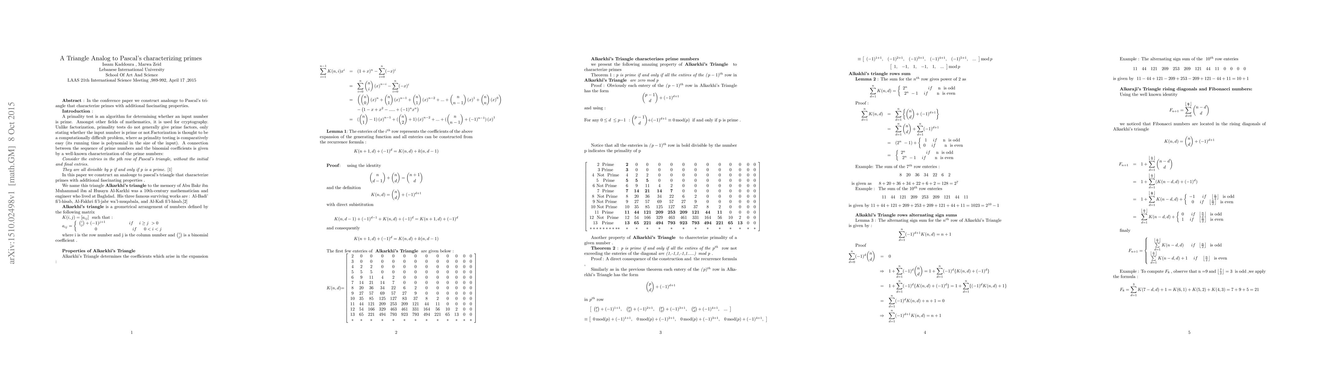 Researchers develop a triangle-like structure that characterizes prime numbers with additional properties, analogous to Pascal's Triangle.