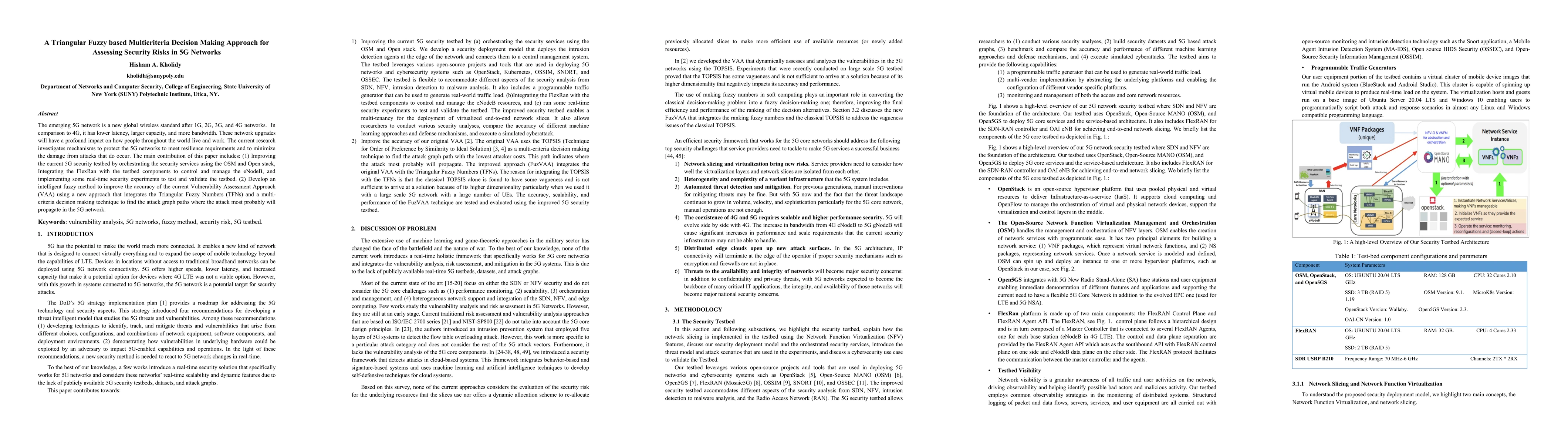 This paper proposes a Triangular Fuzzy based Multicriteria Decision Making Approach to assess security risks in 5G networks. It enhances the 5G security testbed and develops an intelligent fuzzy method integrating Triangular Fuzzy Numbers for more accurate vulnerability assessment.