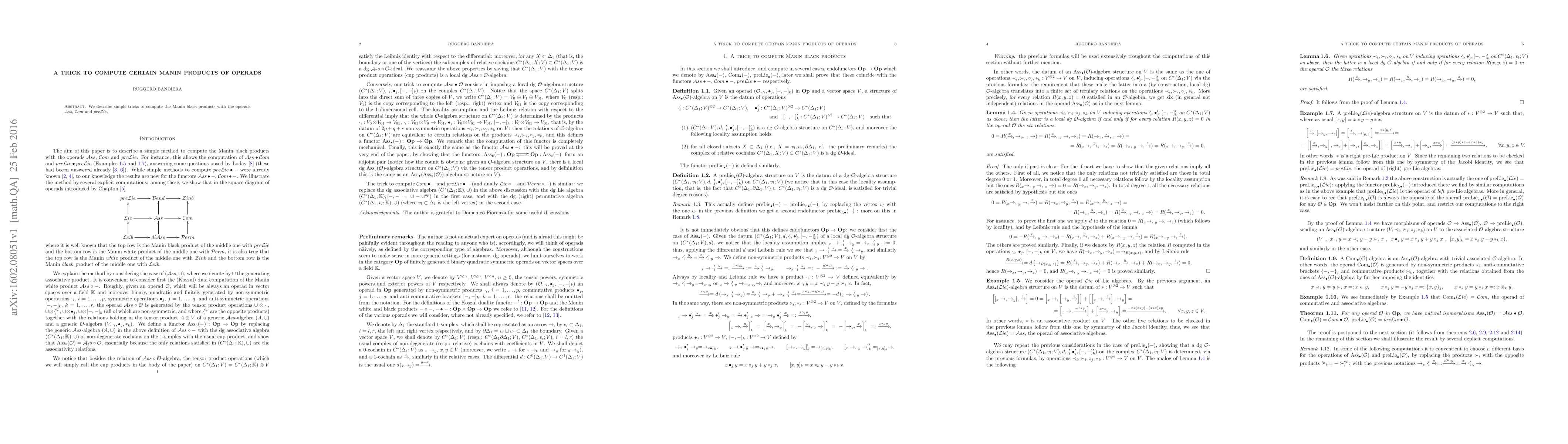 We describe simple tricks to compute the Manin black products with the operads $\mathcal{A}ss$, $\mathcal{C}om$ and $pre\mathcal{L}ie$.