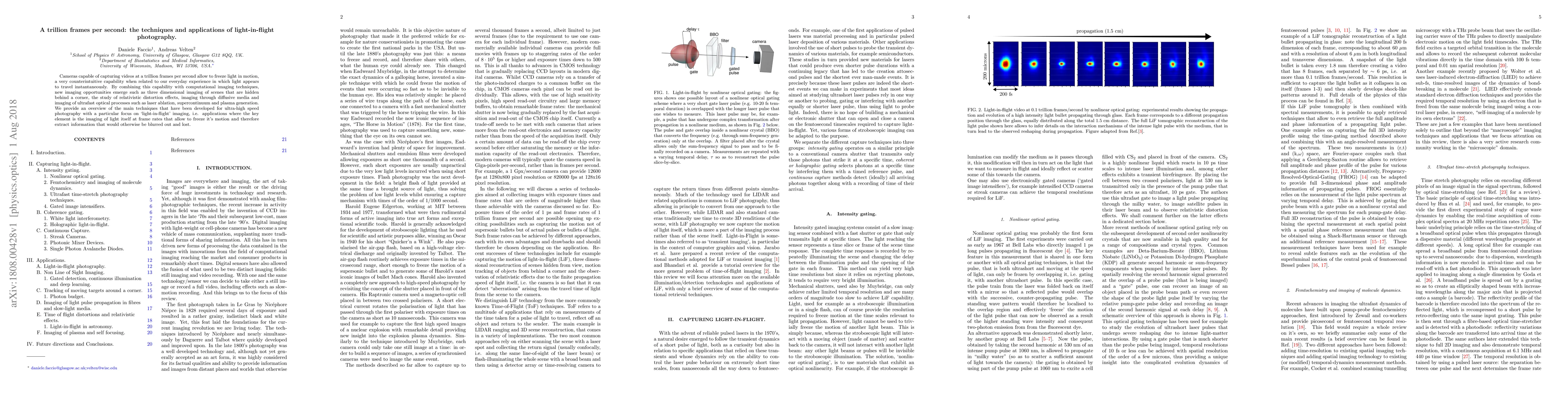 This paper reviews ultra-high speed cameras capturing trillion frames per second, enabling the visualization of light in motion. It highlights techniques for "light-in-flight" imaging, which reveal hidden three-dimensional scenes, relativistic effects, and ultrafast optical processes.