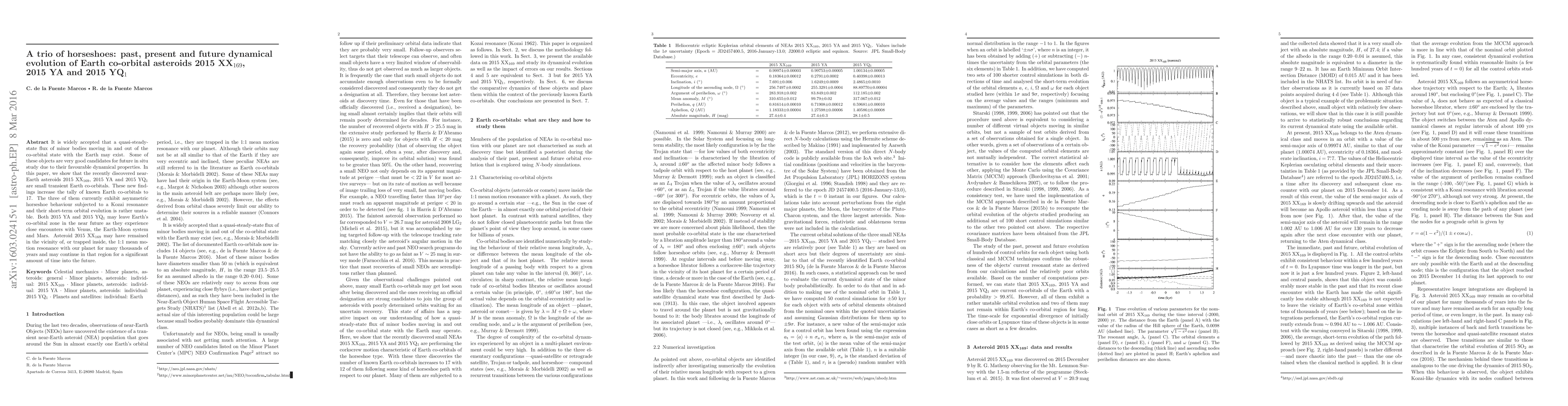 Recently discovered asteroids 2015 XX169, 2015 YA, and 2015 YQ1 exhibit short-term unstable orbits around Earth, with some potentially leaving the co-orbital zone in the near future.