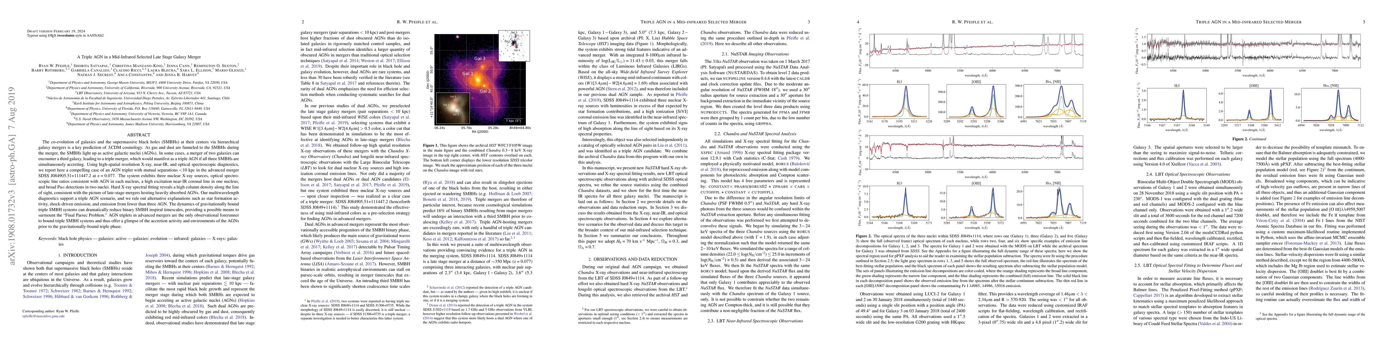 This paper reports a rare case of a triple active galactic nucleus (AGN) in an advanced galaxy merger, identified through multiwavelength observations. The findings suggest that three supermassive black holes are simultaneously accreting material, providing insight into the dynamics of gravitationally bound triple systems and potentially resolving the "Final Parsec Problem."