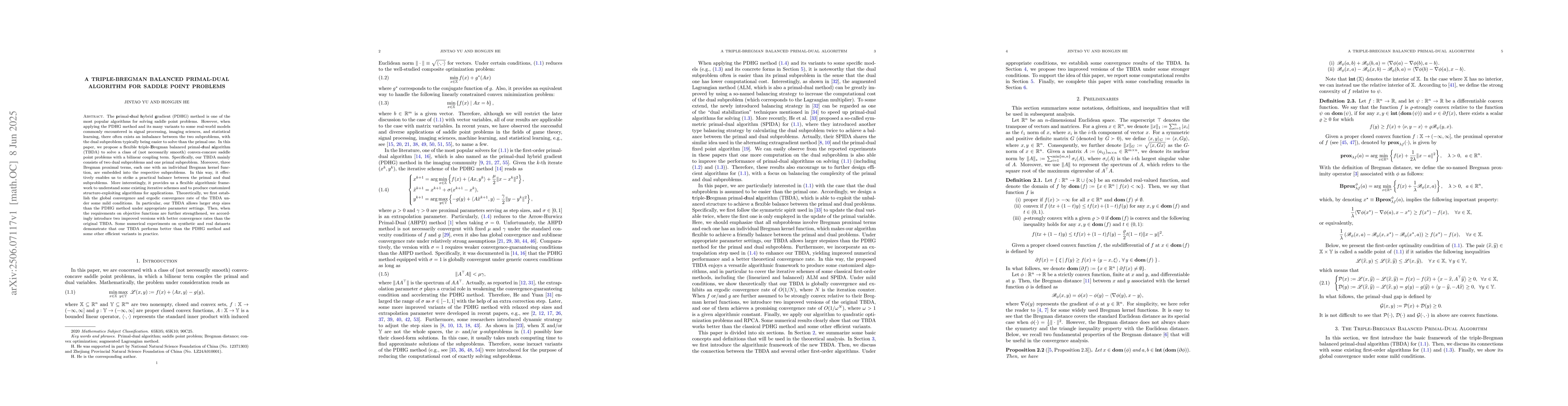 The paper introduces a Triple-Bregman Balanced Primal-Dual Algorithm (TBDA) for solving structured saddle point problems, offering flexibility through distinct Bregman proximal terms and extrapolation parameters, enhancing performance of primal-dual algorithms.
