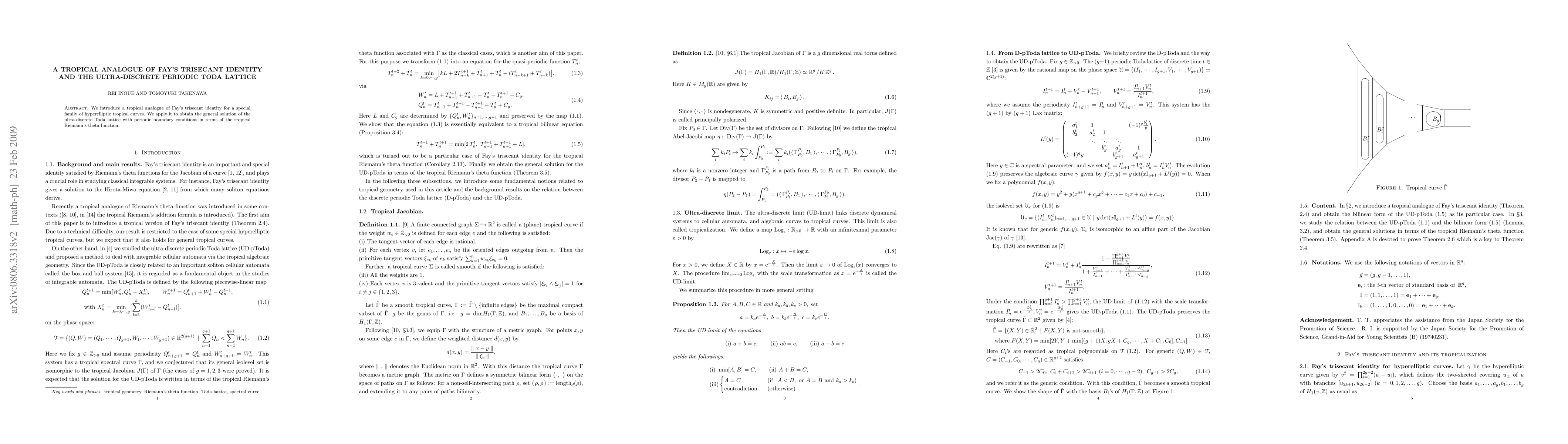 We introduce a tropical analogue of Fay's trisecant identity for a special family of hyperelliptic tropical curves. We apply it to obtain the general solution of the ultra-discrete Toda lattice with periodic boundary conditions in terms of the tropical Riemann's theta function.