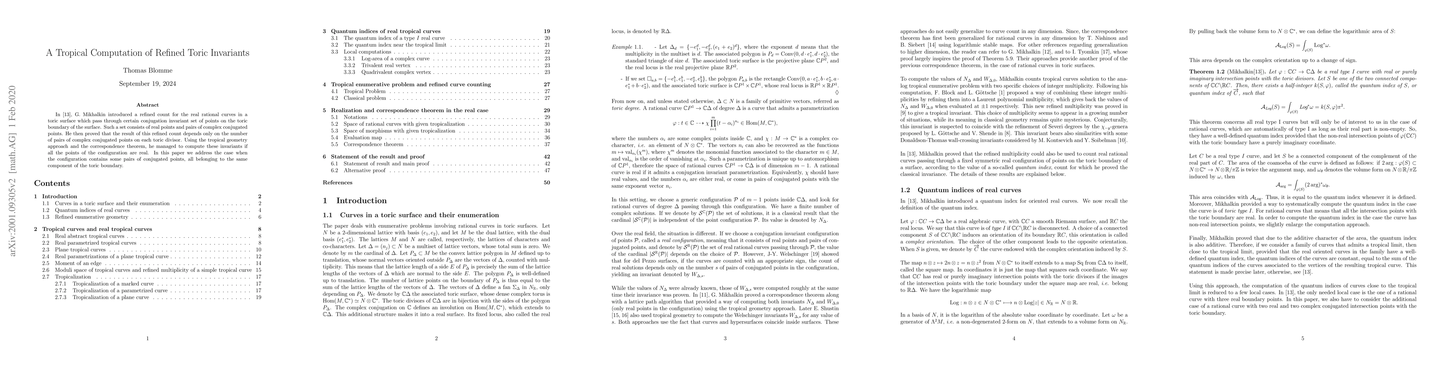 In arXiv:1505.04338(4), G. Mikhalkin introduced a refined count for the real rational curves in a toric surface which pass through certain conjugation invariant set of points on the toric boundary of the surface. Such a set consists of real points and pairs of complex conjugated points. He then proved that the result of this refined count depends only on the number of pairs of complex conjugated points on each toric divisor. Using the tropical geometry approach and the correspondence theorem, he managed to compute these invariants if all the points of the configuration are real. In this paper we address the case when the configuration contains some pairs of conjugated points, all belonging to the same component of the toric boundary.