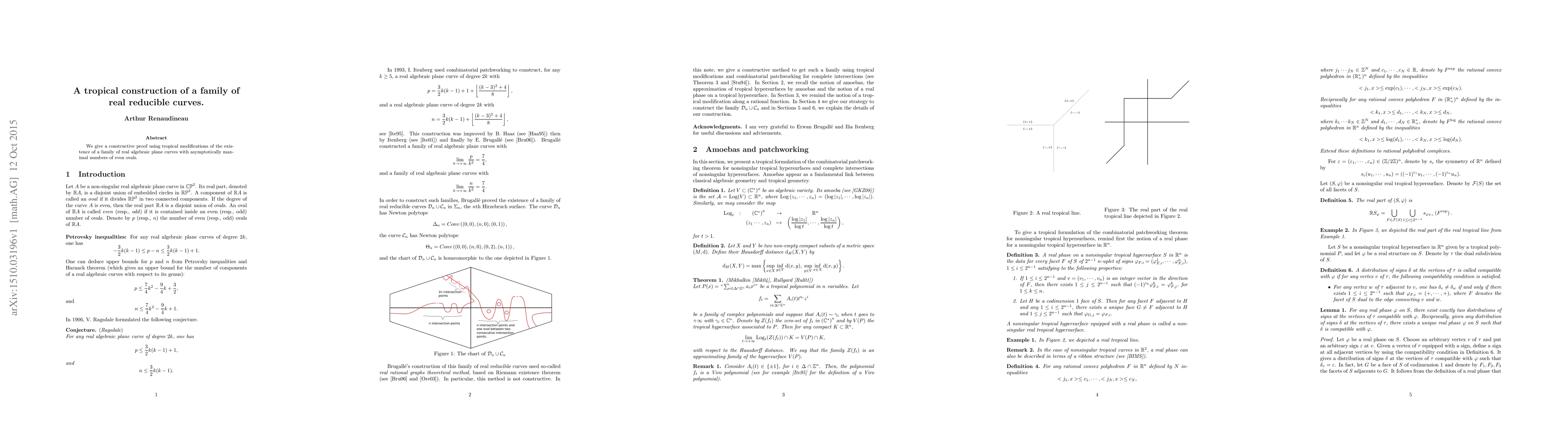 Summary: This paper presents a constructive proof utilizing tropical modifications to establish a family of real algebraic plane curves that exhibit asymptotically maximal even ovals. The approach leverages tropical geometry for the construction.