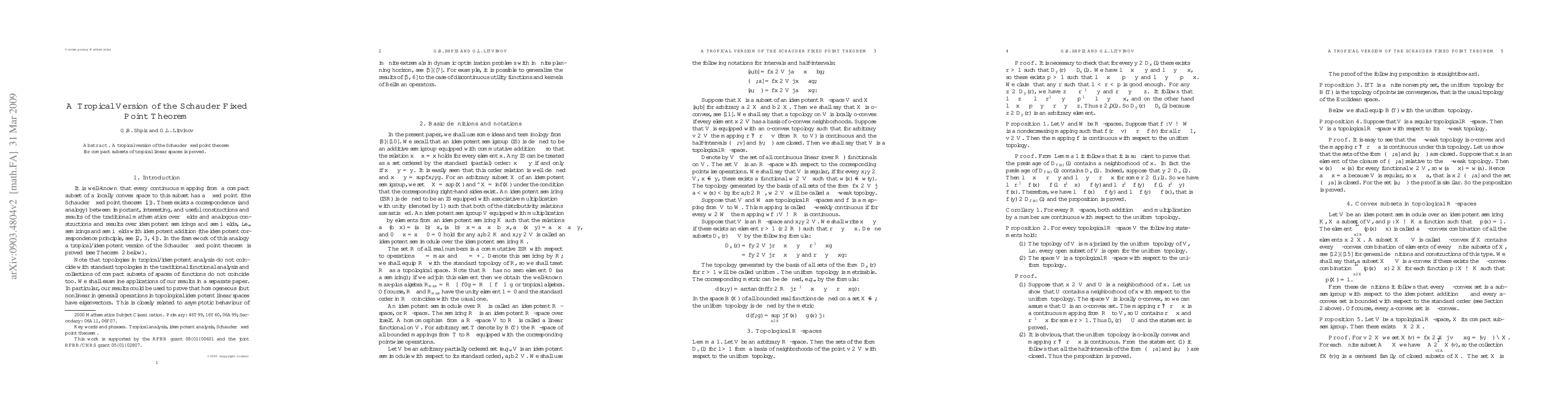 Summary: This paper establishes a tropical adaptation of the Schauder fixed point theorem, demonstrating the existence of fixed points for compact subsets within tropical linear spaces.