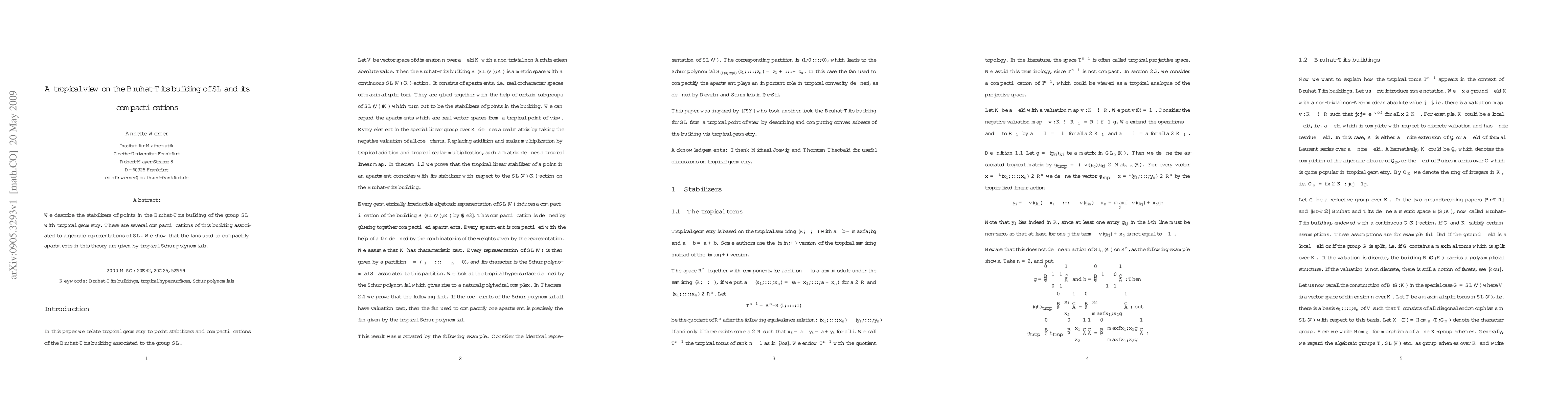 Summary: This paper explores the stabilizers of points in the Bruhat-Tits building of SL using tropical geometry and demonstrates that the compactifications of this building relate to tropical Schur polynomials.