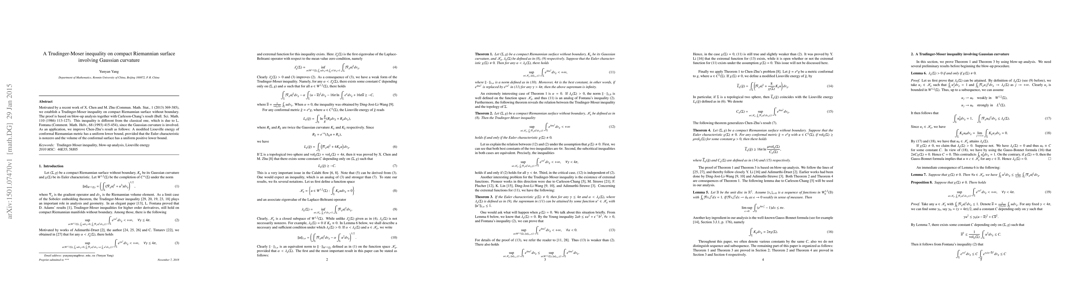 A new Trudinger-Moser inequality is established on compact Riemannian surfaces involving Gaussian curvature, improving previous results in the field of geometry.