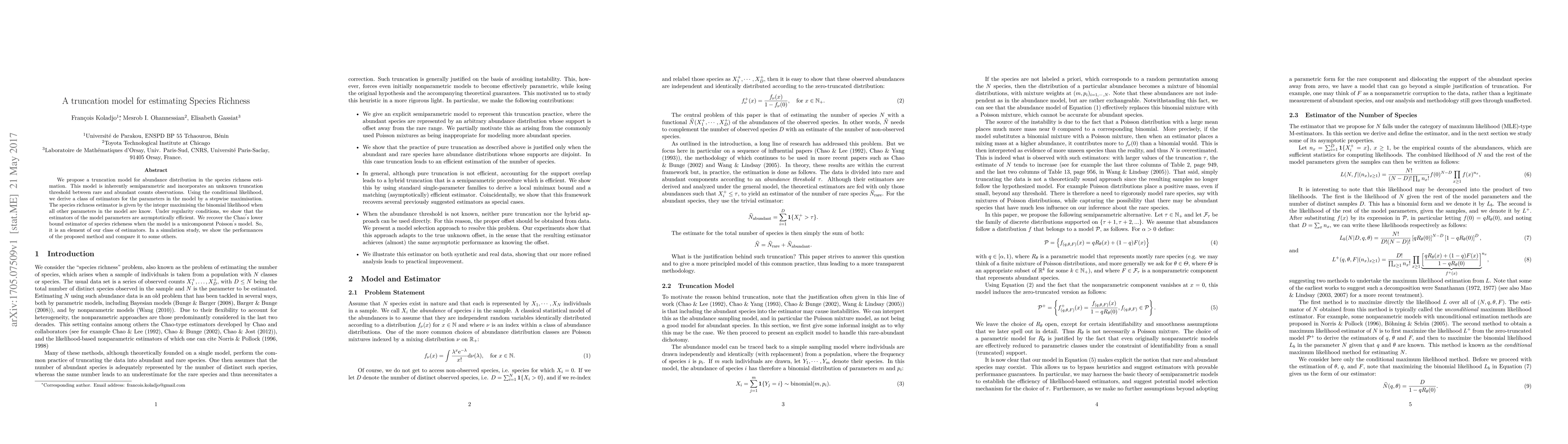 This paper proposes a new model for estimating species richness that incorporates an unknown truncation threshold, allowing for more accurate abundance distribution modeling. The proposed method is shown to be asymptotically efficient and performs well in simulation studies compared to other methods.