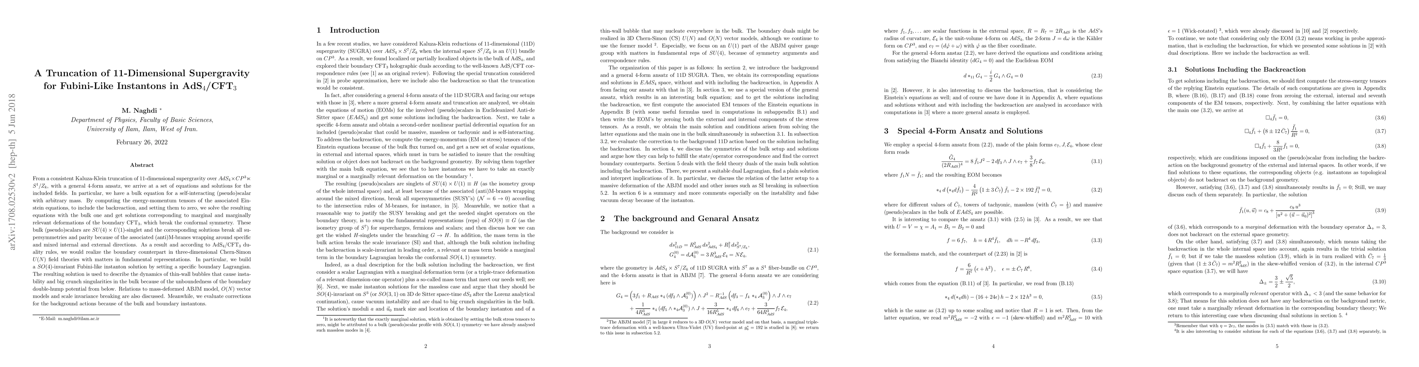 A consistent Kaluza-Klein truncation of 11-dimensional supergravity was used to study Fubini-Like Instantons in AdS_4/CFT_3