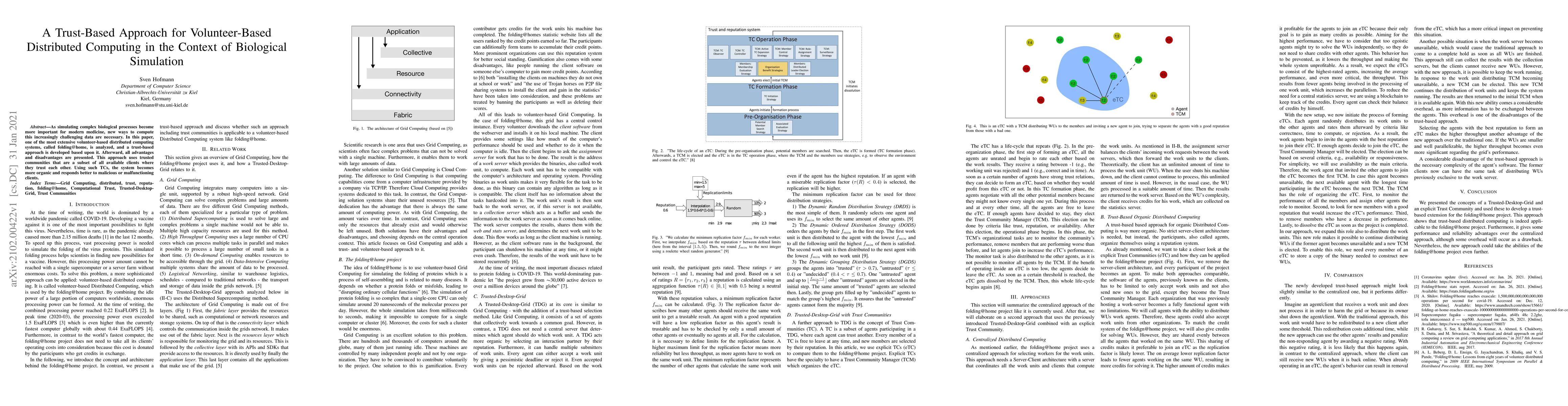 As simulating complex biological processes become more important for modern medicine, new ways to compute this increasingly challenging data are necessary. In this paper, one of the most extensive volunteer-based distributed computing systems, called folding@home, is analyzed, and a trust-based approach is developed based upon it. Afterward, all advantages and disadvantages are presented. This approach uses trusted communities that are a subset of all available clients where they trust each other. Using such TCs, the system becomes more organic and responds better to malicious or malfunctioning clients.