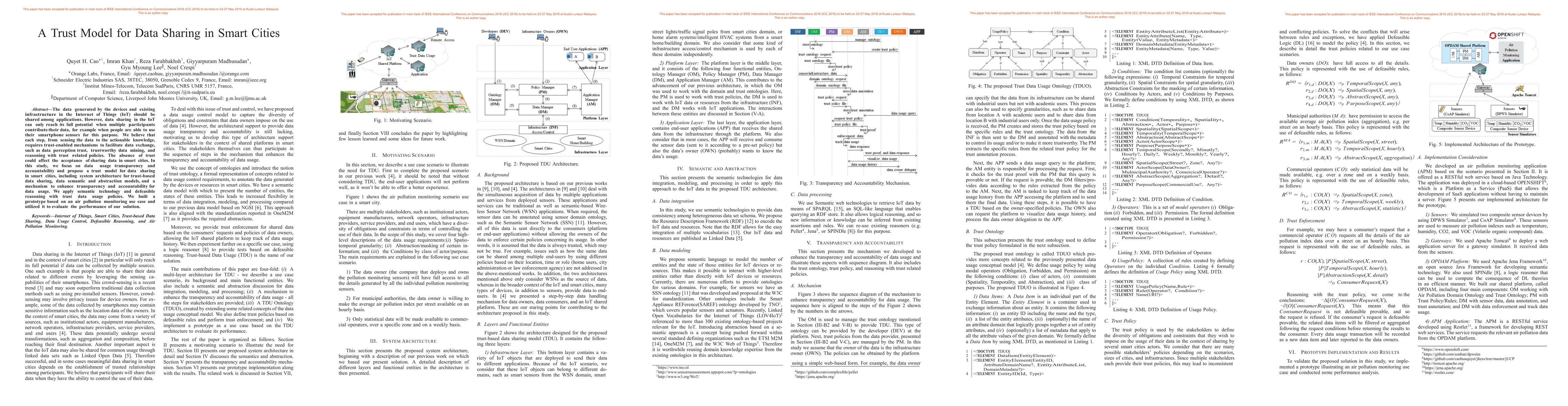 This study proposes a trust model for data sharing in smart cities to enhance transparency and accountability, using semantic technology and defeasible reasoning with trust data usage policies.