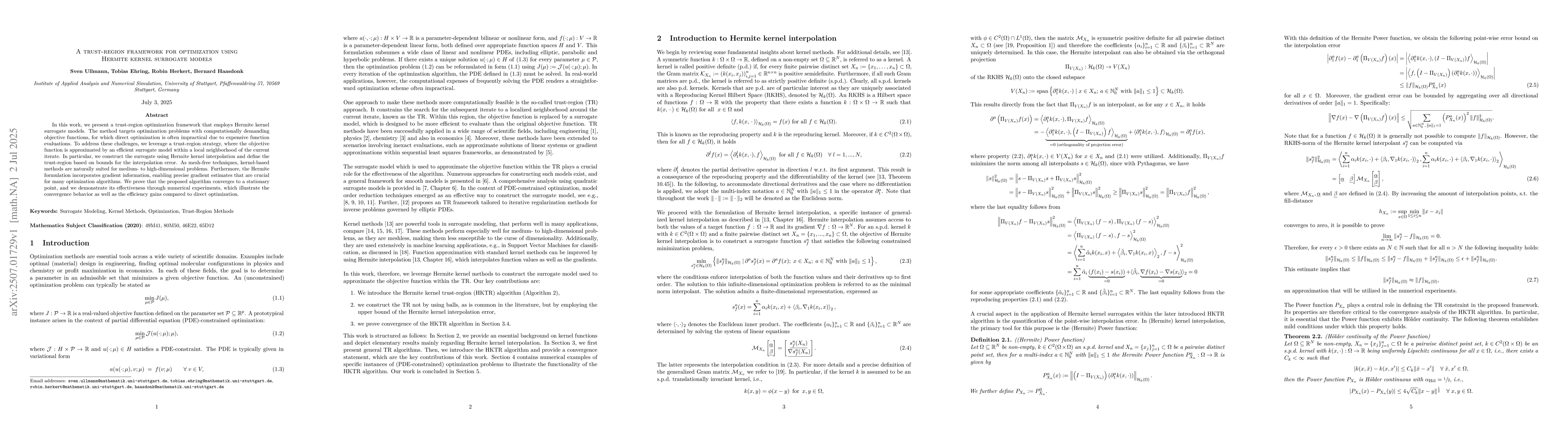 In this work, we present a trust-region optimization framework that employs Hermite kernel surrogate models. The method targets optimization problems with computationally demanding objective functions, for which direct optimization is often impractical due to expensive function evaluations. To address these challenges, we leverage a trust-region strategy, where the objective function is approximated by an efficient surrogate model within a local neighborhood of the current iterate. In particular, we construct the surrogate using Hermite kernel interpolation and define the trust-region based on bounds for the interpolation error. As mesh-free techniques, kernel-based methods are naturally suited for medium- to high-dimensional problems. Furthermore, the Hermite formulation incorporates gradient information, enabling precise gradient estimates that are crucial for many optimization algorithms. We prove that the proposed algorithm converges to a stationary point, and we demonstrate its effectiveness through numerical experiments, which illustrate the convergence behavior as well as the efficiency gains compared to direct optimization.