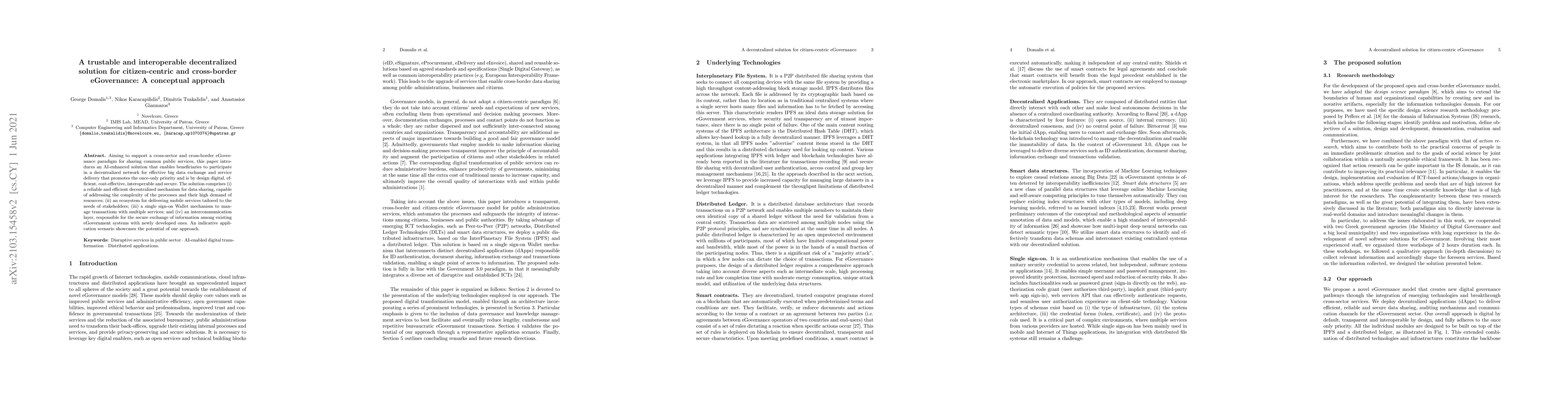 Aiming to support a cross-sector and cross-border eGovernance paradigm for sharing common public services, this paper introduces an AI-enhanced solution that enables beneficiaries to participate in a decenntralized network for effective big data exchange and service delivery that promotes the once-only priority and is by design digital, efficient, cost-effective, interoperable and secure. The solution comprises (i) a reliable and efficient decentralized mechanism for data sharing, capable of addressing the complexity of the processes and their high demand of resources; (ii) an ecosystem for delivering mobile services tailored to the needs of stakeholders; (iii) a single sign-on Wallet mechanism to manage the transactions with multiple services; and (iv) an intercommunication layer, responsible for the secure exchange of information among existing eGovernment systems with newly developed ones. An indicative application scenario showcases the potential of our approach.