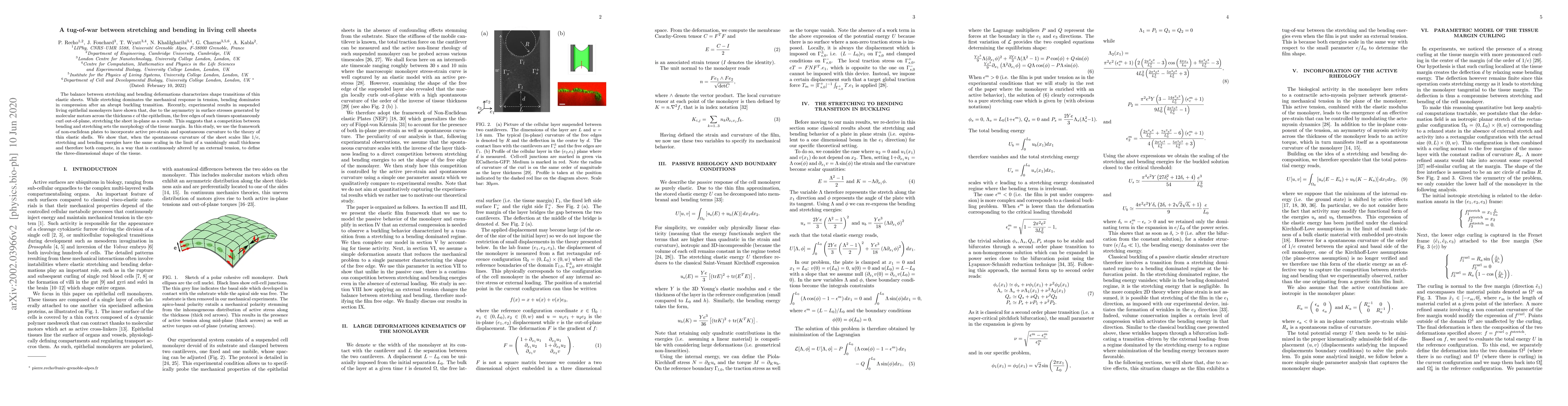 This research investigates the interplay between stretching and bending in living cell sheets, showing that their balance determines tissue margin morphology. Using non-Euclidean plate theory, it demonstrates that both stretching and bending energies compete to shape the three-dimensional form of the tissue, especially when spontaneous curvature scales with the sheet's thickness.