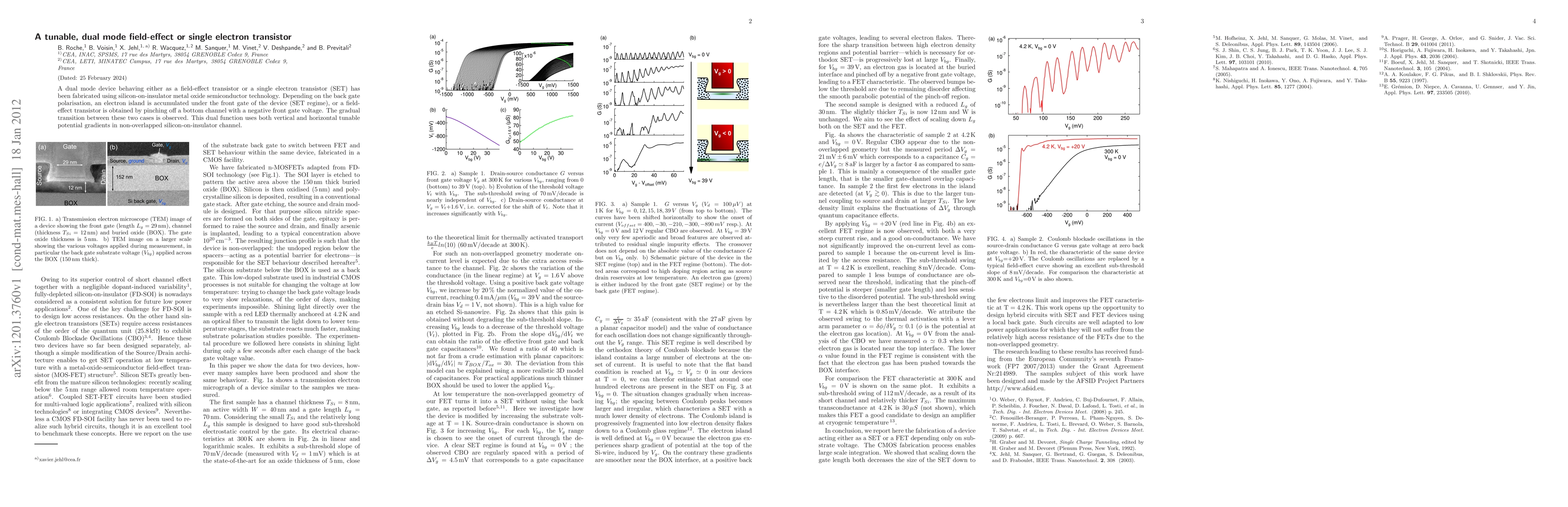 This paper presents a dual-mode transistor that can function either as a field-effect transistor or a single electron transistor, achieved through silicon-on-insulator technology. The device transitions gradually between these modes based on back gate polarization, utilizing vertical and horizontal tunable potential gradients in the channel.