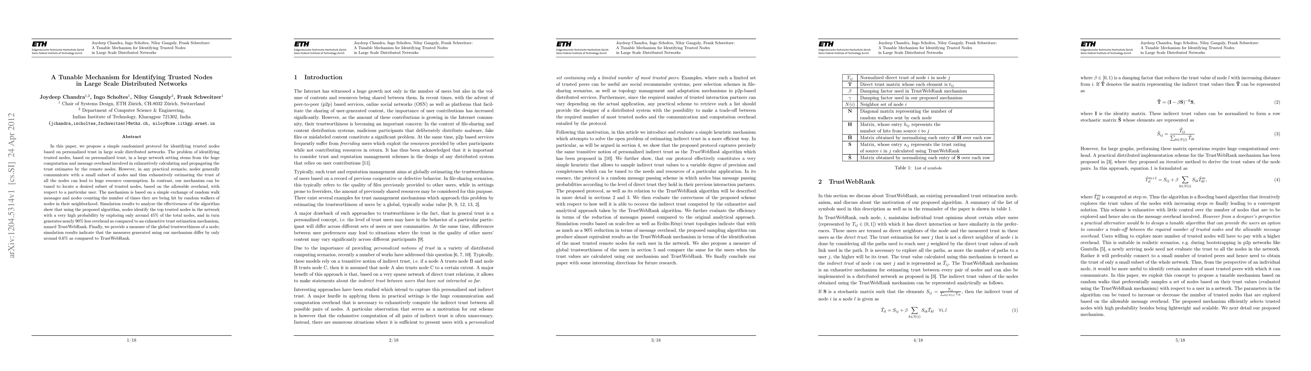 In this paper, we propose a simple randomized protocol for identifying trusted nodes based on personalized trust in large scale distributed networks. The problem of identifying trusted nodes, based on personalized trust, in a large network setting stems from the huge computation and message overhead involved in exhaustively calculating and propagating the trust estimates by the remote nodes. However, in any practical scenario, nodes generally communicate with a small subset of nodes and thus exhaustively estimating the trust of all the nodes can lead to huge resource consumption. In contrast, our mechanism can be tuned to locate a desired subset of trusted nodes, based on the allowable overhead, with respect to a particular user. The mechanism is based on a simple exchange of random walk messages and nodes counting the number of times they are being hit by random walkers of nodes in their neighborhood. Simulation results to analyze the effectiveness of the algorithm show that using the proposed algorithm, nodes identify the top trusted nodes in the network with a very high probability by exploring only around 45% of the total nodes, and in turn generates nearly 90% less overhead as compared to an exhaustive trust estimation mechanism, named TrustWebRank. Finally, we provide a measure of the global trustworthiness of a node; simulation results indicate that the measures generated using our mechanism differ by only around 0.6% as compared to TrustWebRank.
