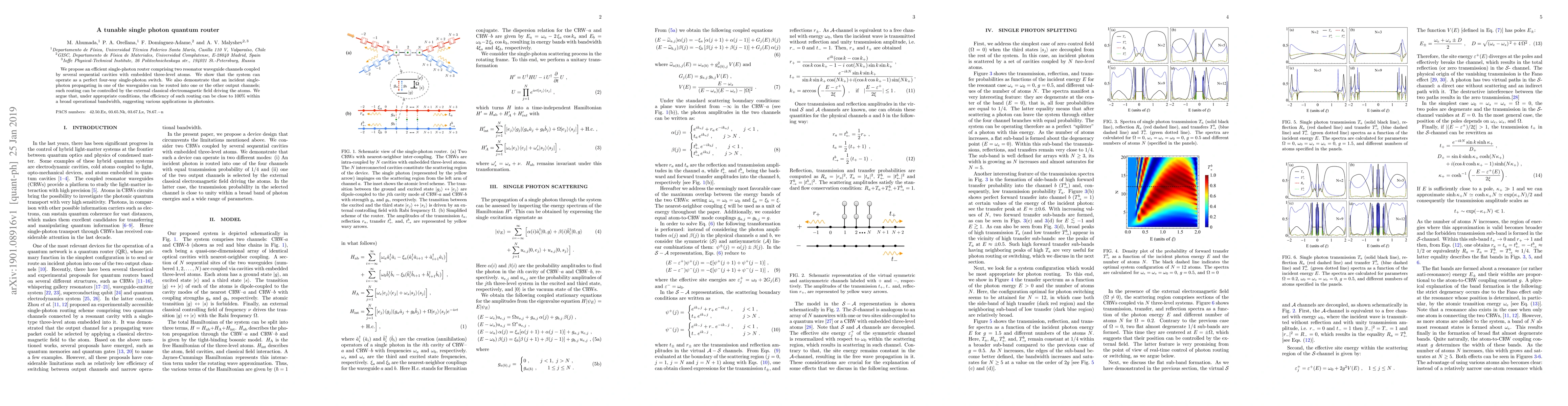 This paper proposes a highly efficient single-photon router using coupled resonator waveguide channels and three-level atoms, demonstrating a perfect four-way switch that can route single photons under control of an external electromagnetic field, with near 100% efficiency over a broad bandwidth. Potential applications in advanced photonics are suggested.