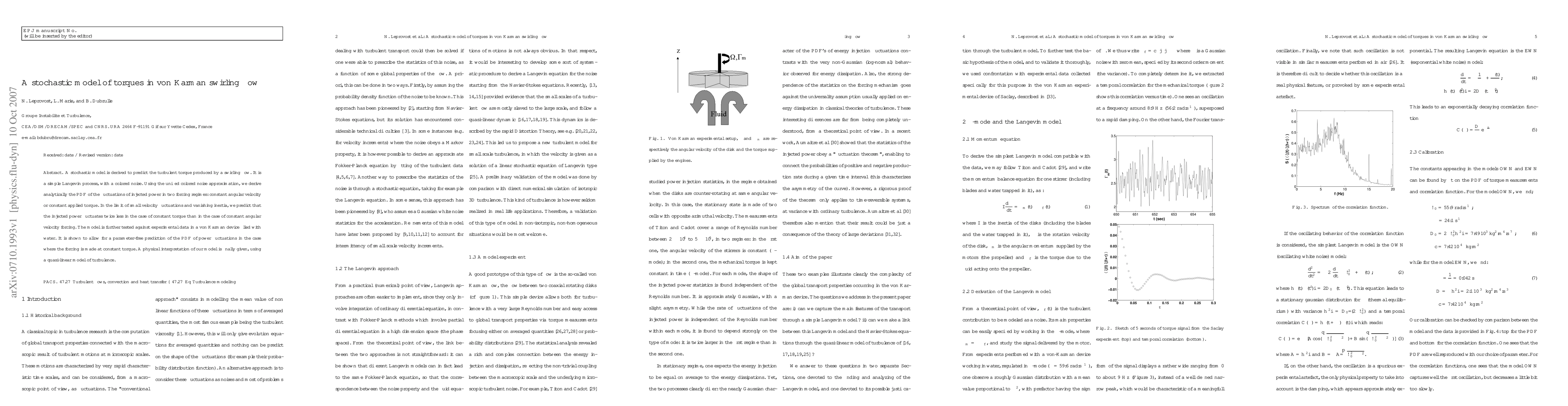This paper develops a stochastic model to predict the turbulent torque in von Karman swirling flow, deriving the PDF of power fluctuations analytically under constant angular velocity and constant torque forcing. The model, tested against experimental data, predicts less power fluctuation variance under constant torque than constant angular velocity.