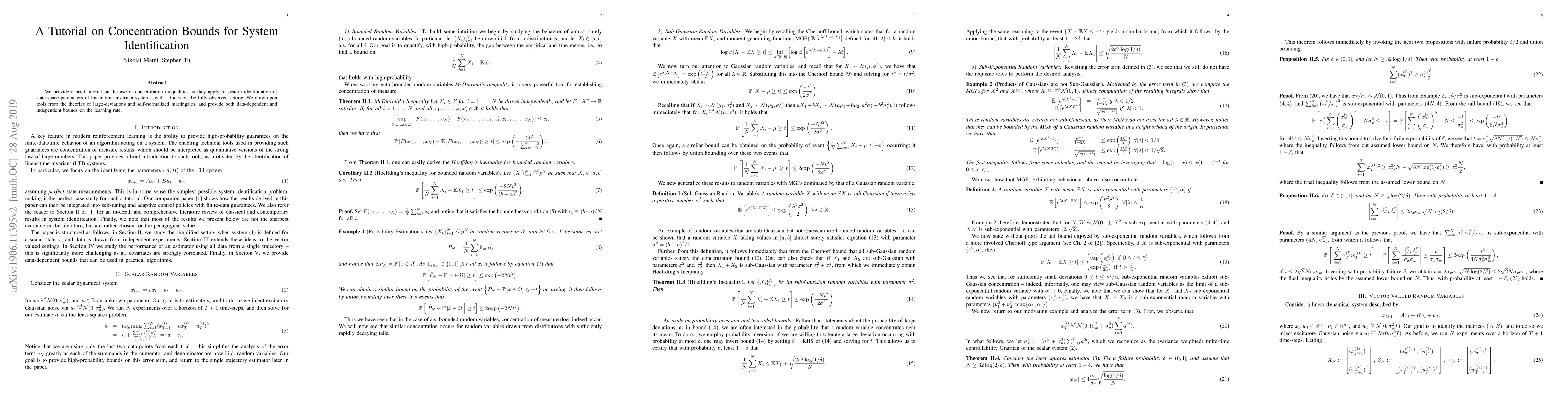 We provide a brief tutorial on the use of concentration inequalities as they apply to system identification of state-space parameters of linear time invariant systems, with a focus on the fully observed setting. We draw upon tools from the theories of large-deviations and self-normalized martingales, and provide both data-dependent and independent bounds on the learning rate.
